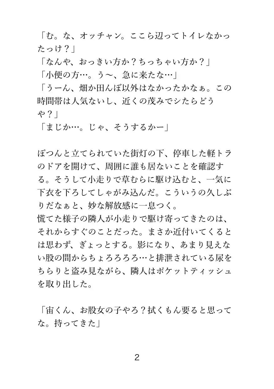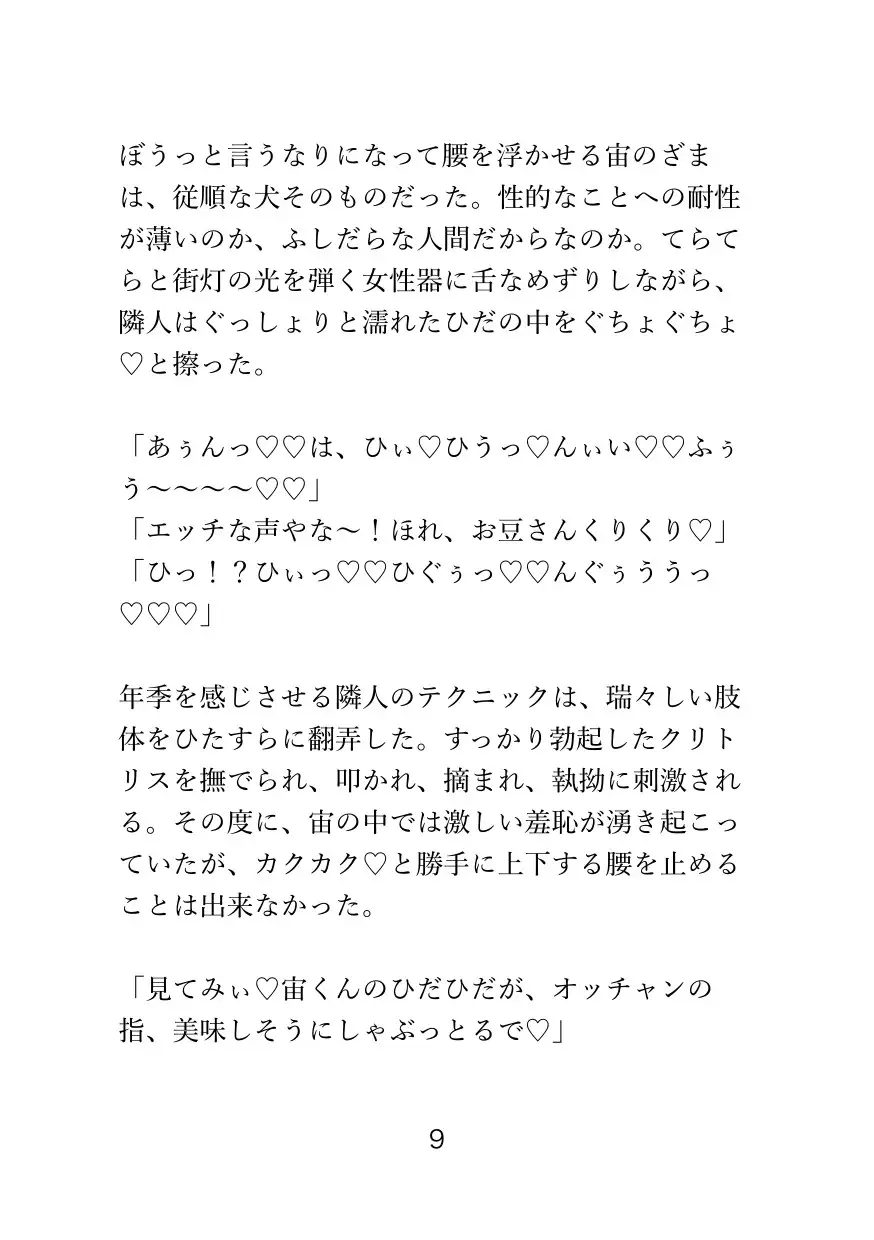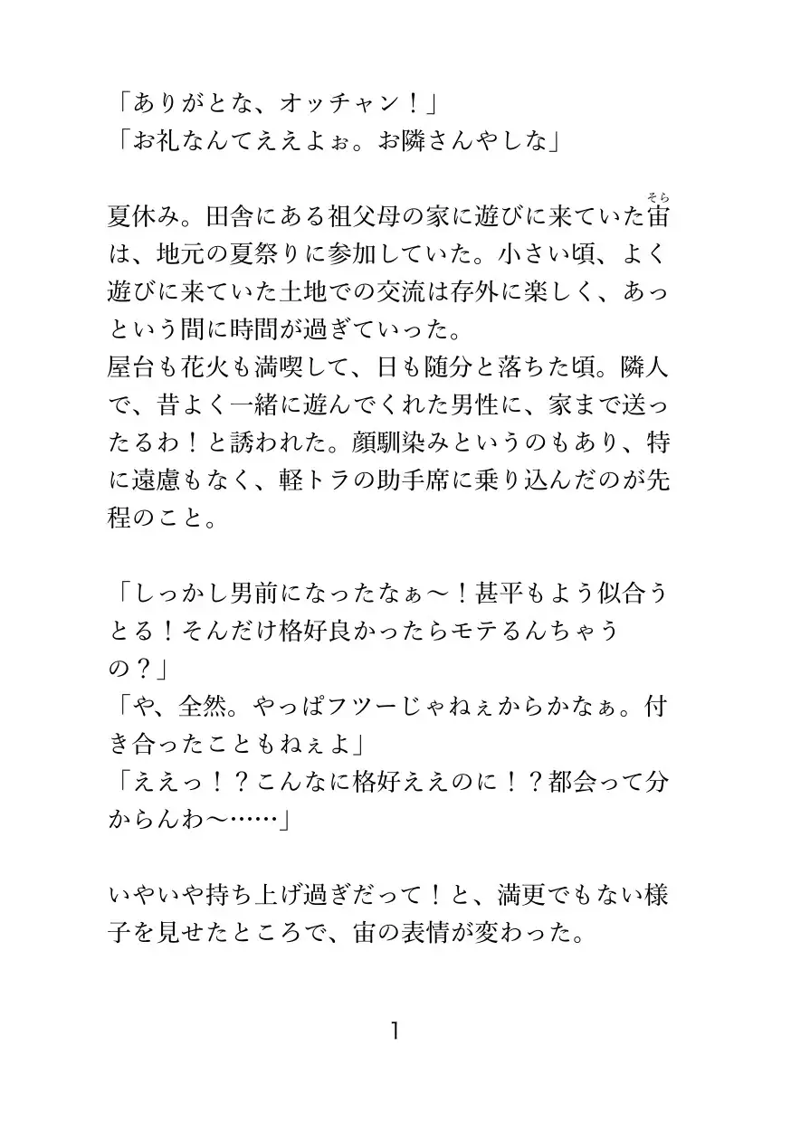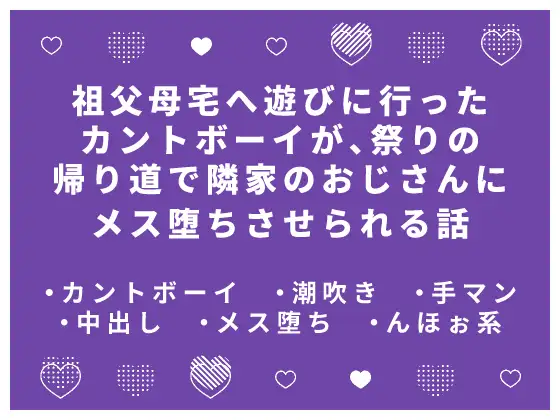 祖父母が住んでいる田舎の祭りに参加した日に、帰り道で隣家のおじさんの手マンでイかされて、最終的におじさんのメス犬になるお話です。