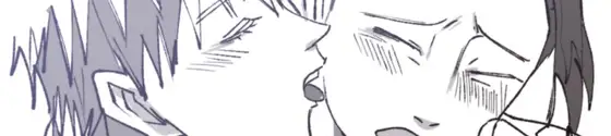 キャラが机に身を伏せた状態での親密なシーンを描いた、白黒1ページ・3コマ構成のR18五条〇×夏油〇ファンコミックです。本文は英語表記です。