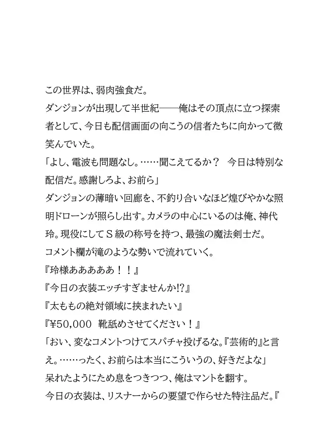 最強の剣技と美貌、そして数百万の信者を持つ彼は、ある日の記念配信で、未踏破ダンジョンに足を踏み入れる。