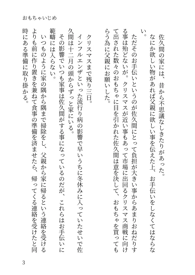 佐久間は父親にクリスマスプレゼントを買ってもらう為、小さい頃からある習わしに従う。