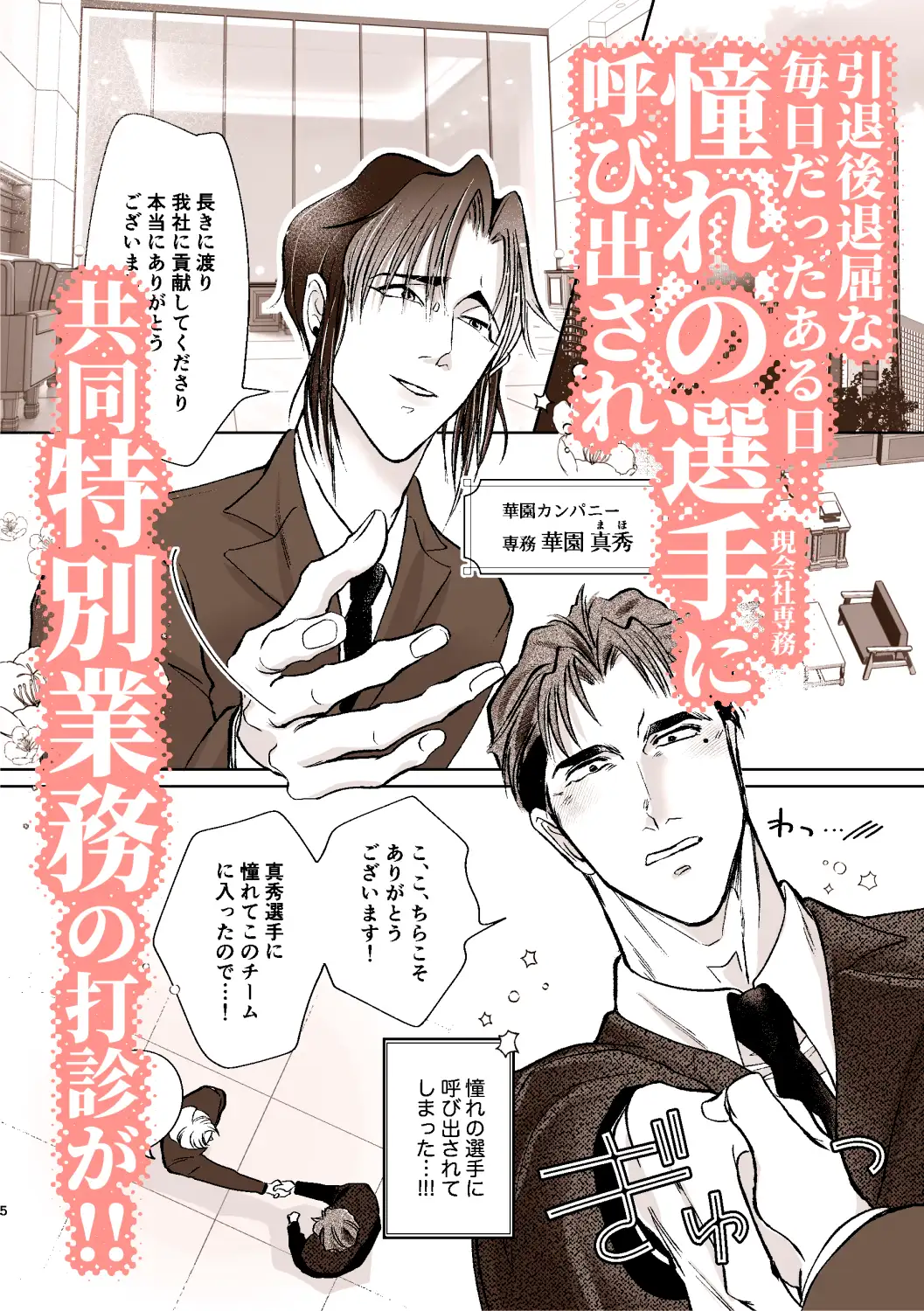 憧れの専務(攻)と一緒に働けると喜んでいた会社員の堅狼 弛良々(けんろう・ちよろう受)。