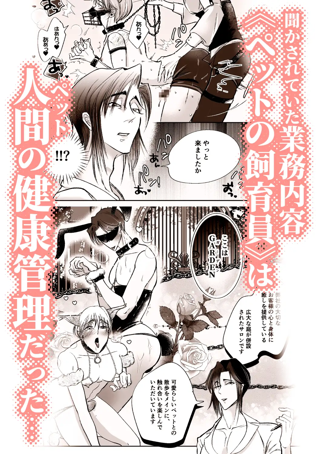 主な仕事はペットの体調管理。先輩が手取り足取り優しく、時に厳しく教えてくれて…屈強会社員がメス犬に志願するまでのお話♡
