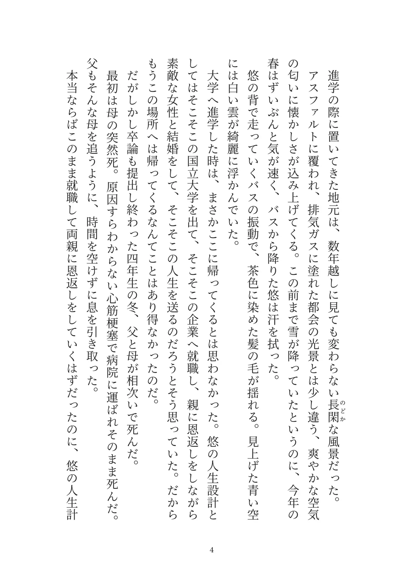 ▶両親を失い傷心のまま地元に帰った主人公の悠。