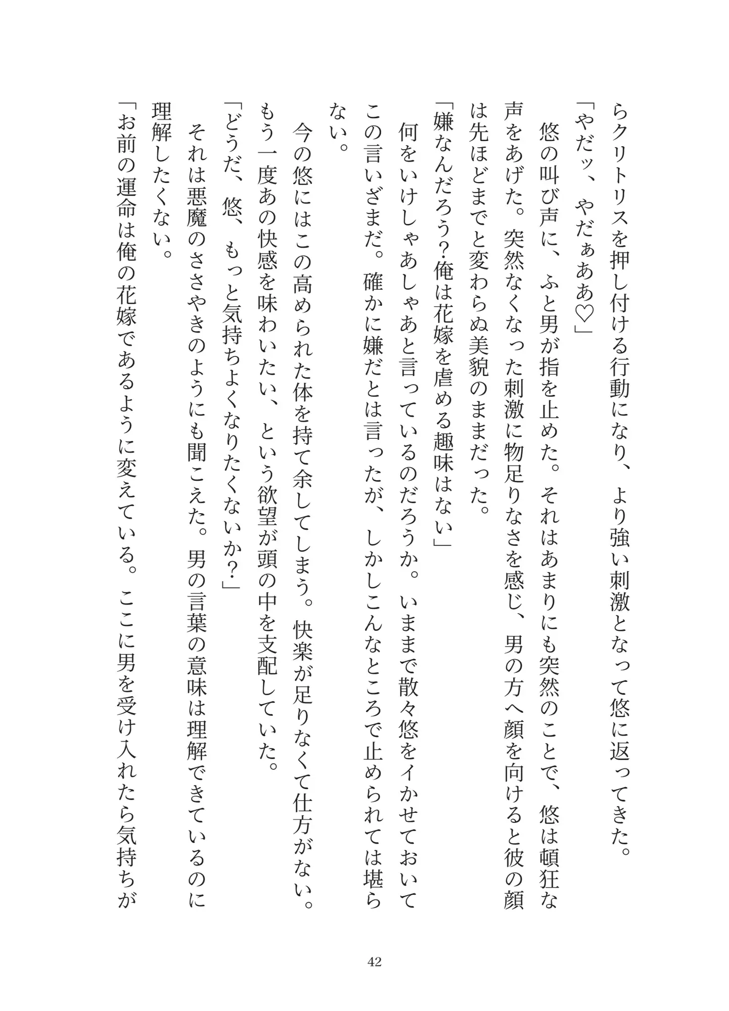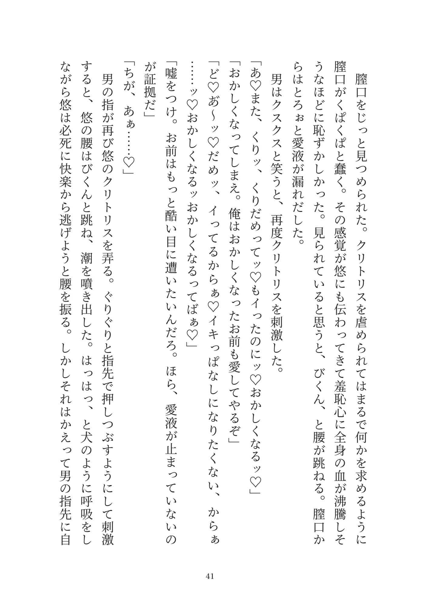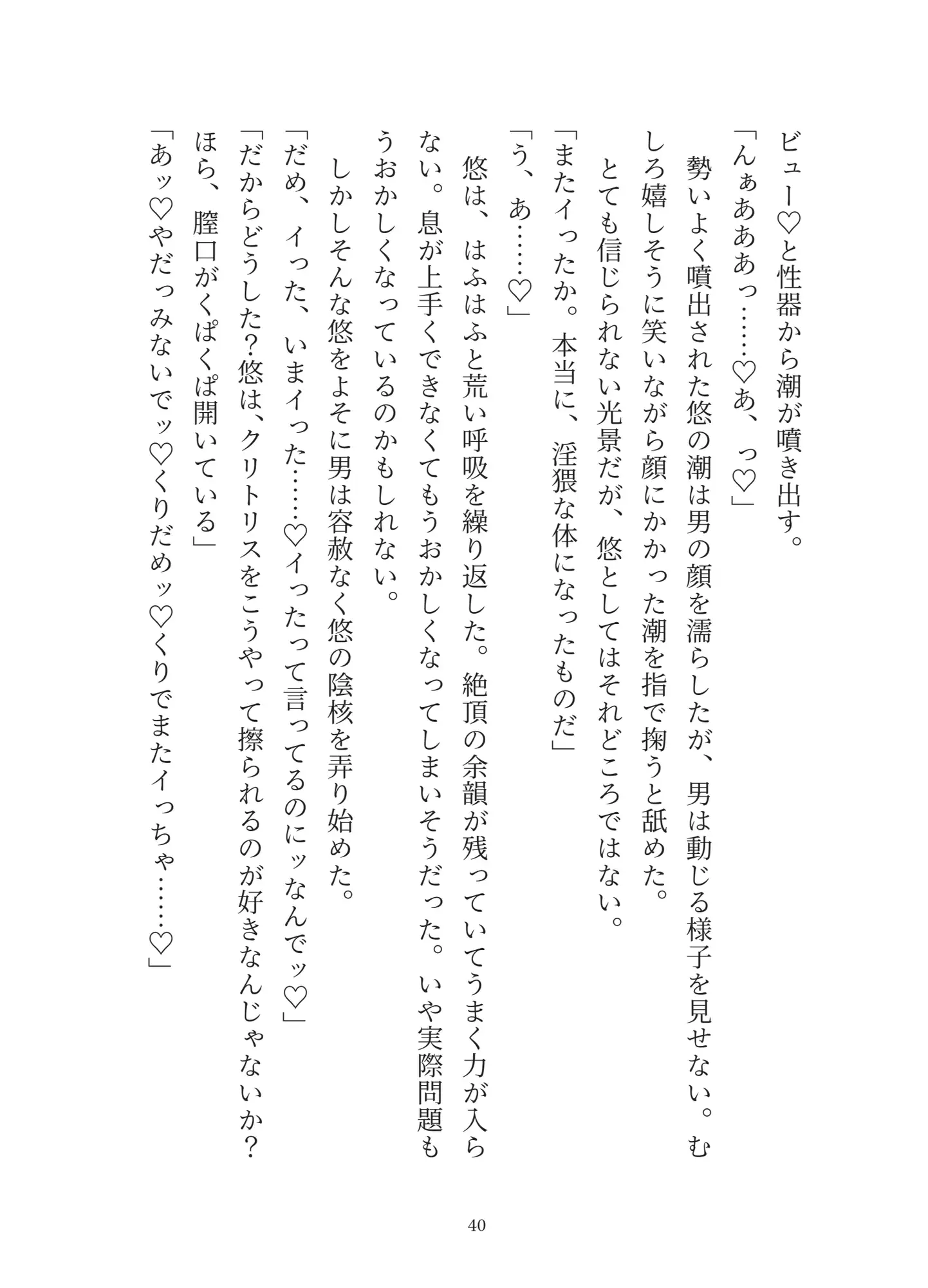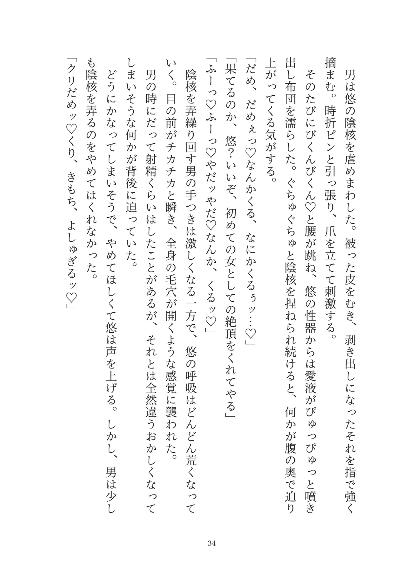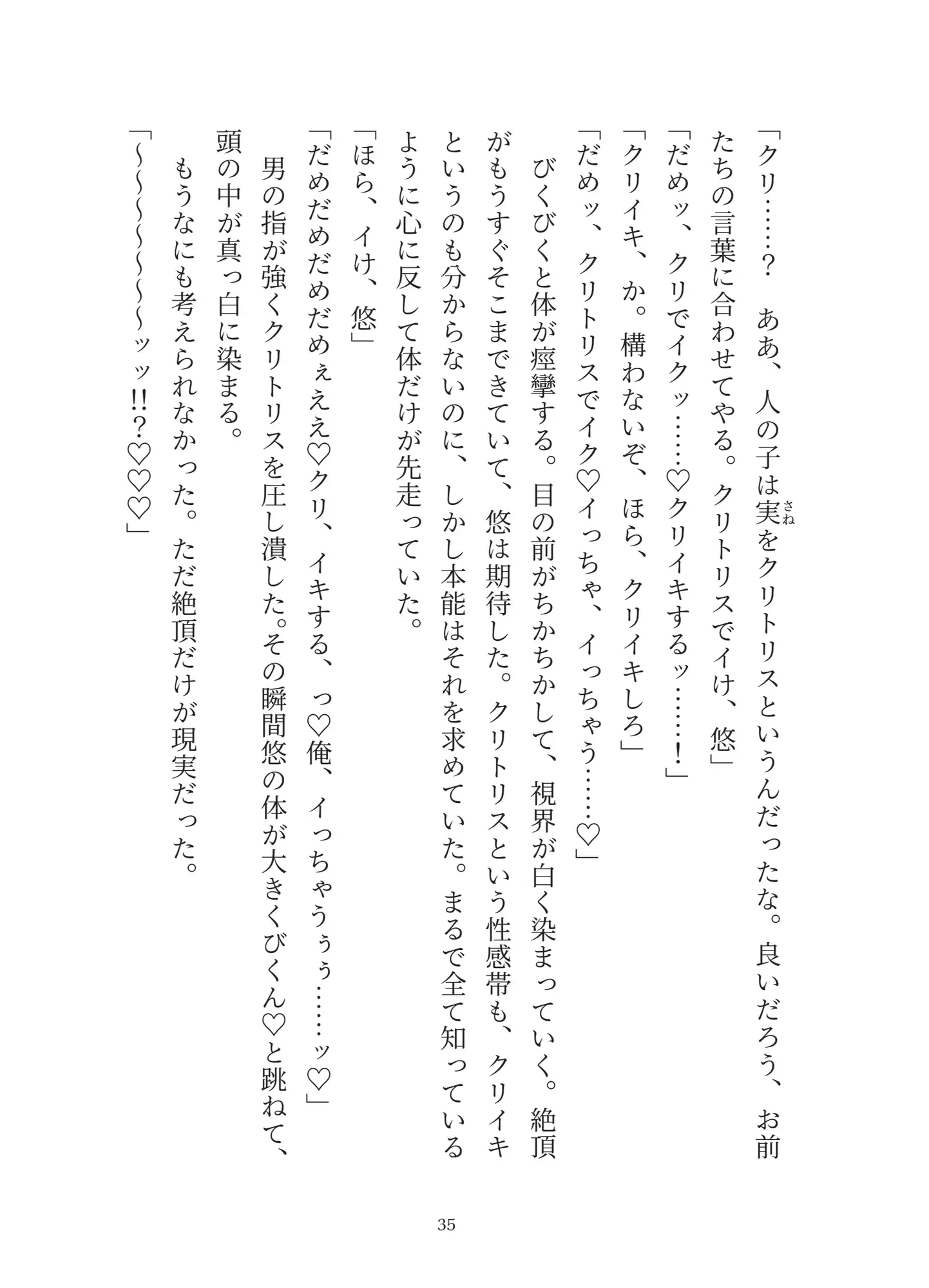 そんなことはできないと抵抗する悠の体は男によって下半身だけ女性にされてしまう。男の与える快楽に最初の内こそ抵抗するが、クリ責めをされていきついには快楽に屈してしまう──▶プレイ内容