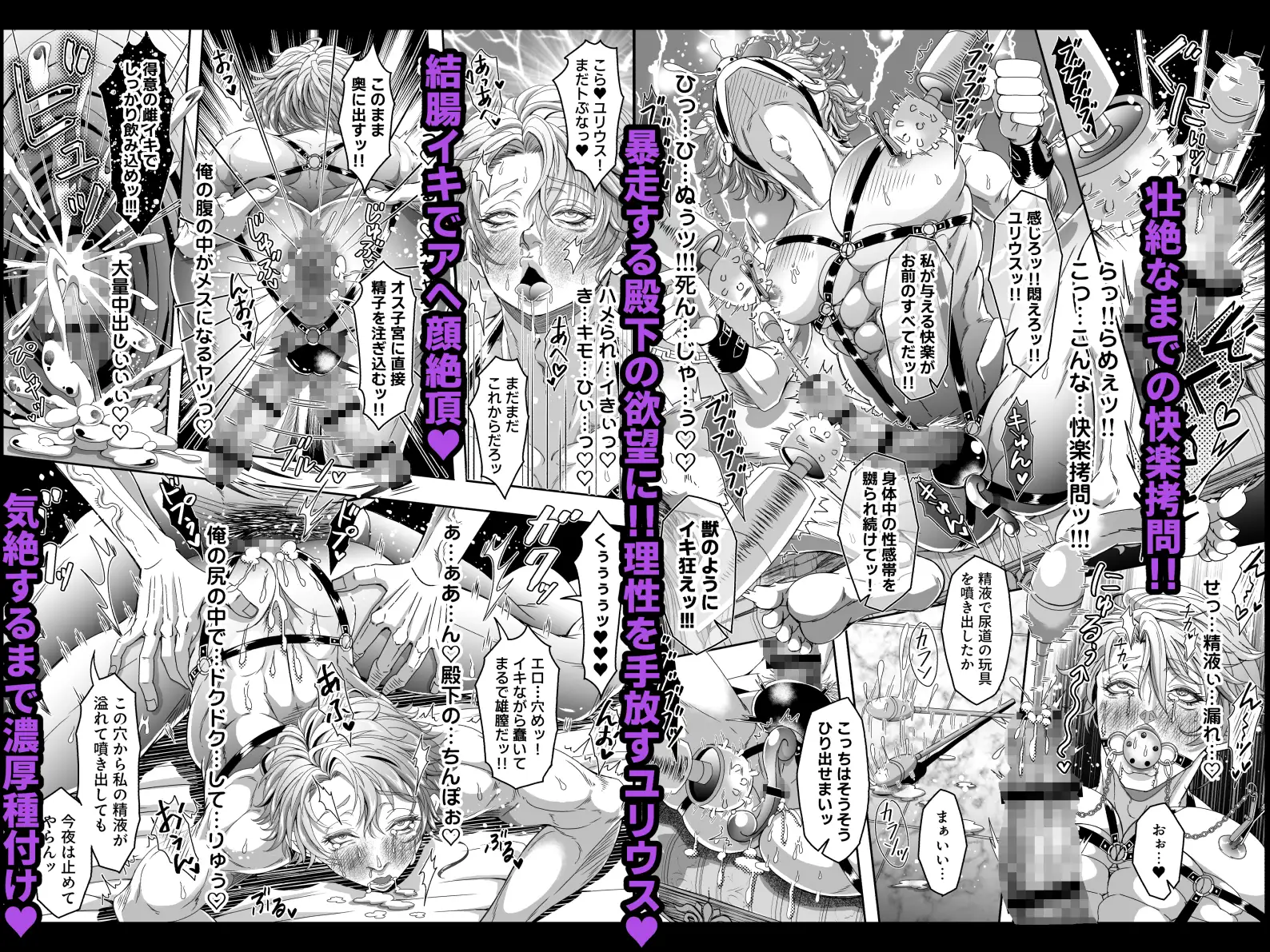 猿轡に拘束具、目隠し状態で乳首クリップに尿道バイブ…。王子の放つ催淫臭に強○発情させられながら異常なまでの快楽○問を受けるユリウスは、止まない性器への刺激と終わらない連続絶頂に次第に正気を手放していく…2カップルによるそれぞれのワカラセお仕置きSEX!嫉妬に狂ったオスの本性と、お仕置きされてるのに…どんどん気持ち良くなって…メス堕ちアクメが止まらない!SM沼に堕ちてゆく男達の痴態をたっぷりとお楽しみください!!