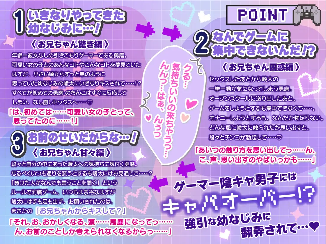 年齢=彼女なしの引きこもりゲーマーである勇磨 。可愛い女の子とのあんなコトやこんなコトを夢見ていたはずが、小さい頃からずっと弟のように思っていた幼なじみの崚太にいきなりキスされて……!?