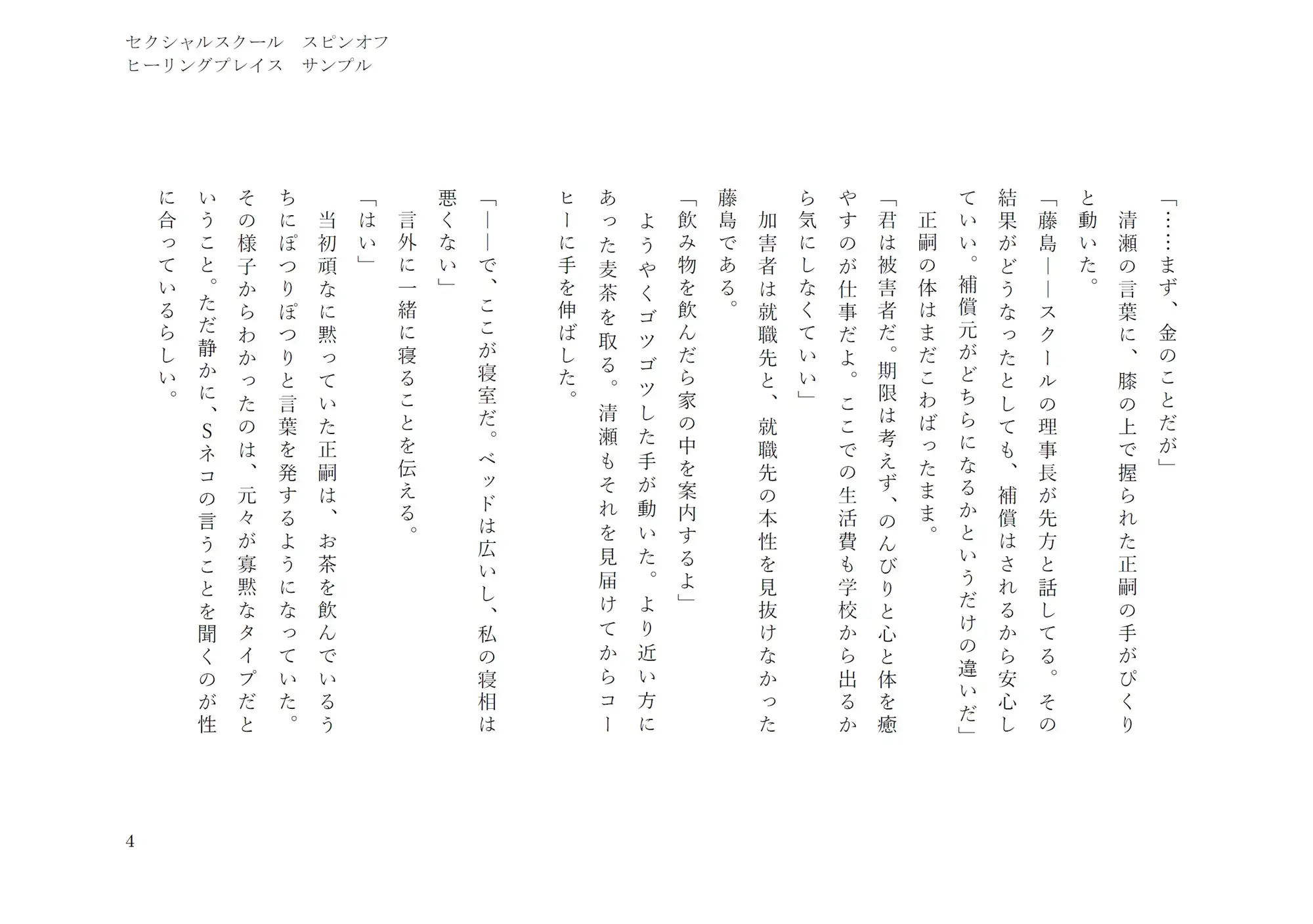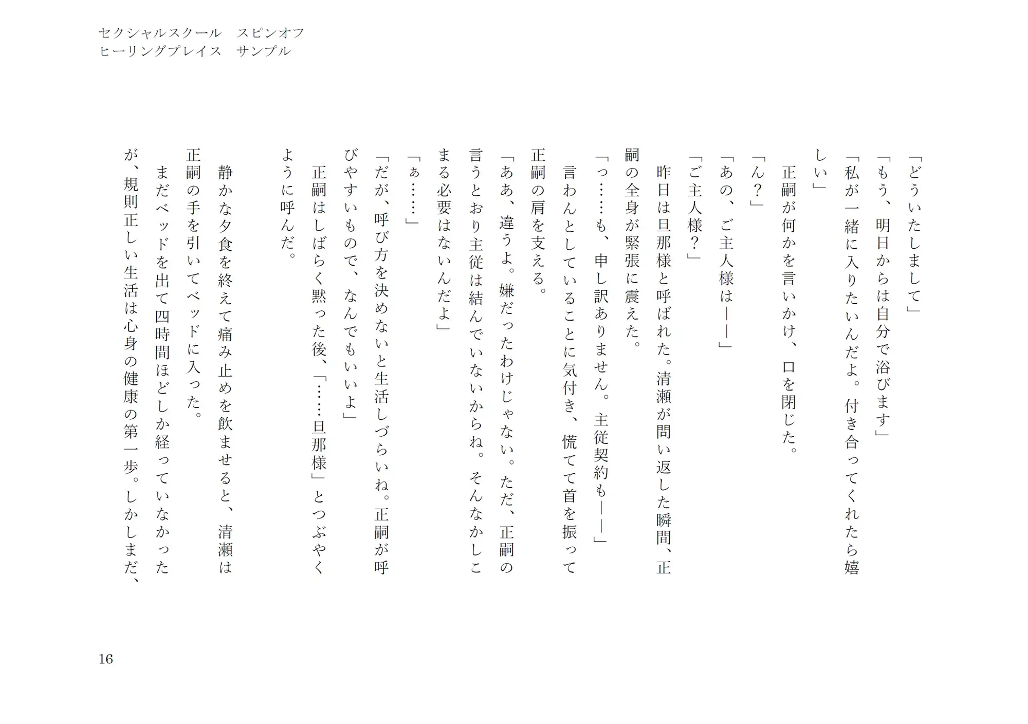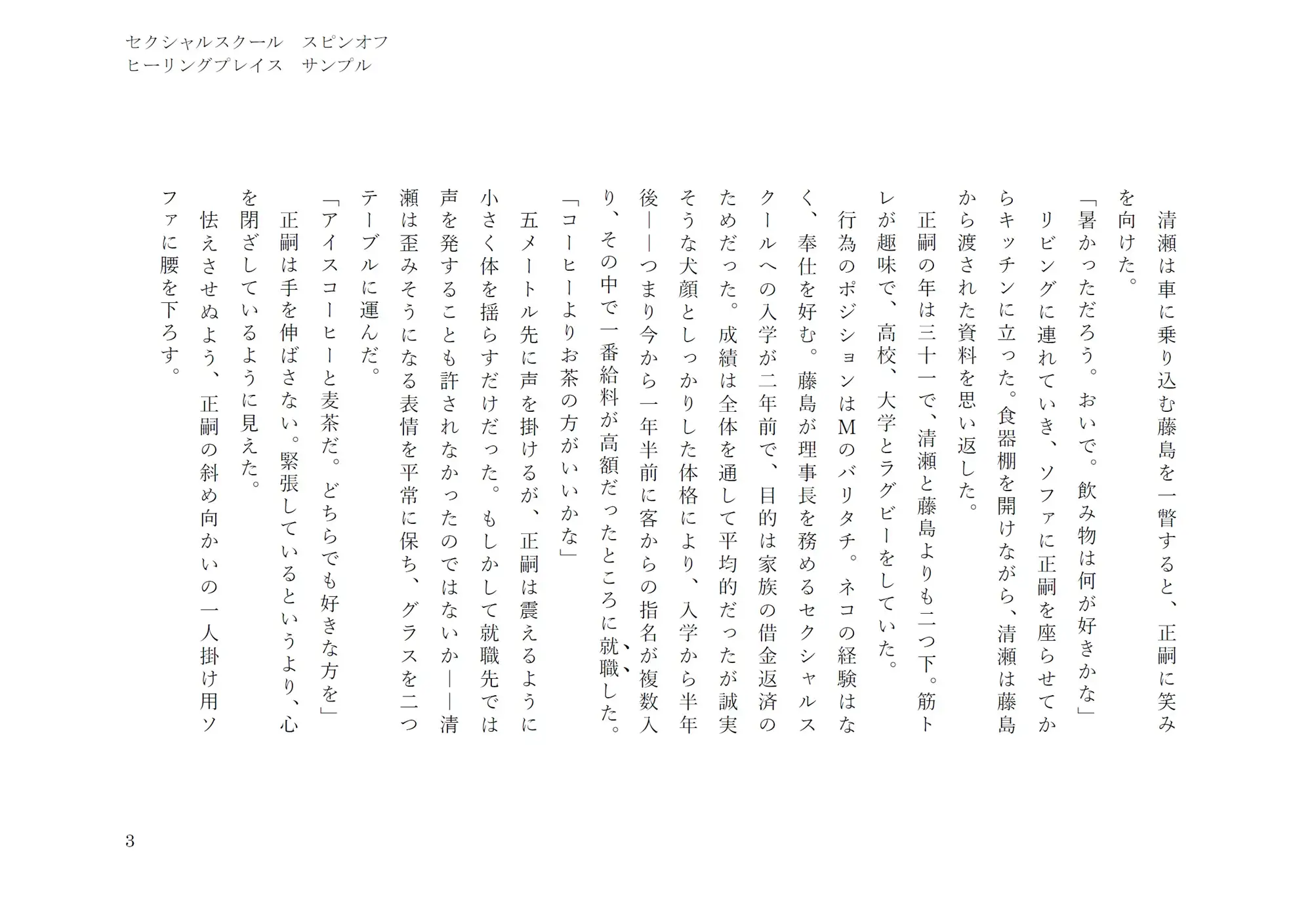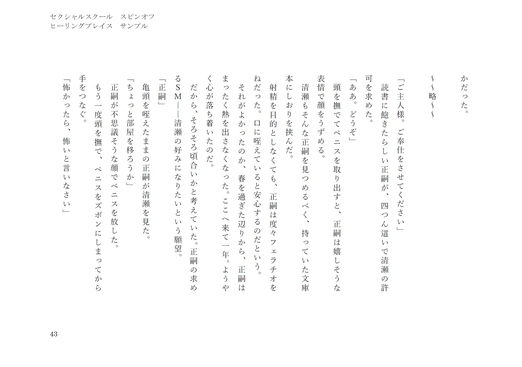 のスピンオフとなっていますが、セクシャルスクール未読でも問題なくお読みいただけます。傷ついたMを癒やすことを仕事(趣味)とする清瀬。