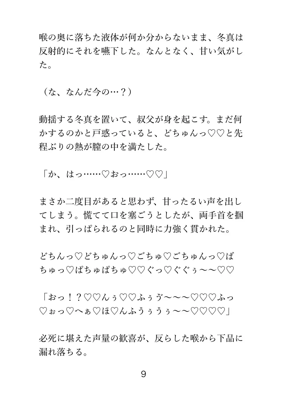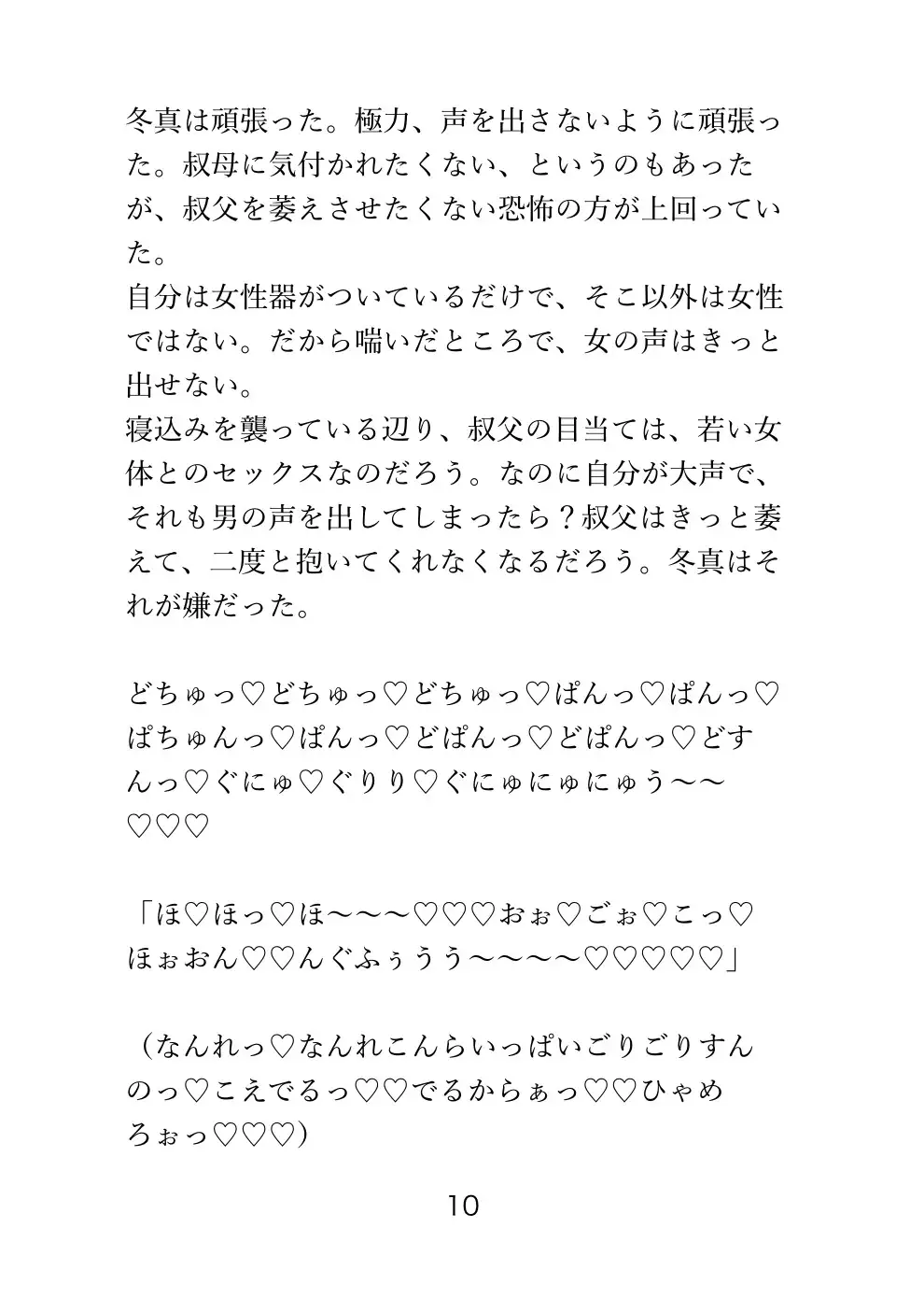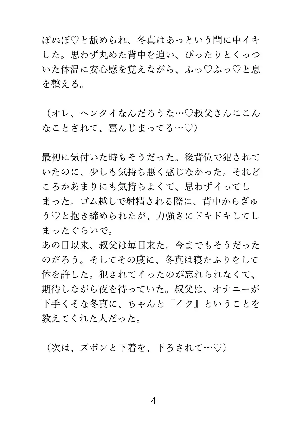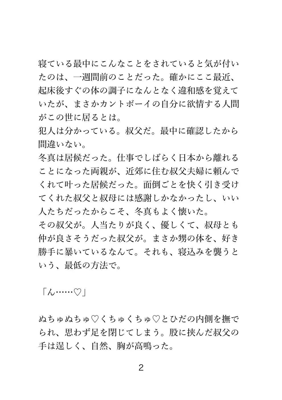 叔父に寝込みを襲われ、犯されていたことに気付いたカントボーイが、ある日、寝たふりをしてセックスを楽しんでいたら薬を飲まされてしまい、イかされまくるお話です。