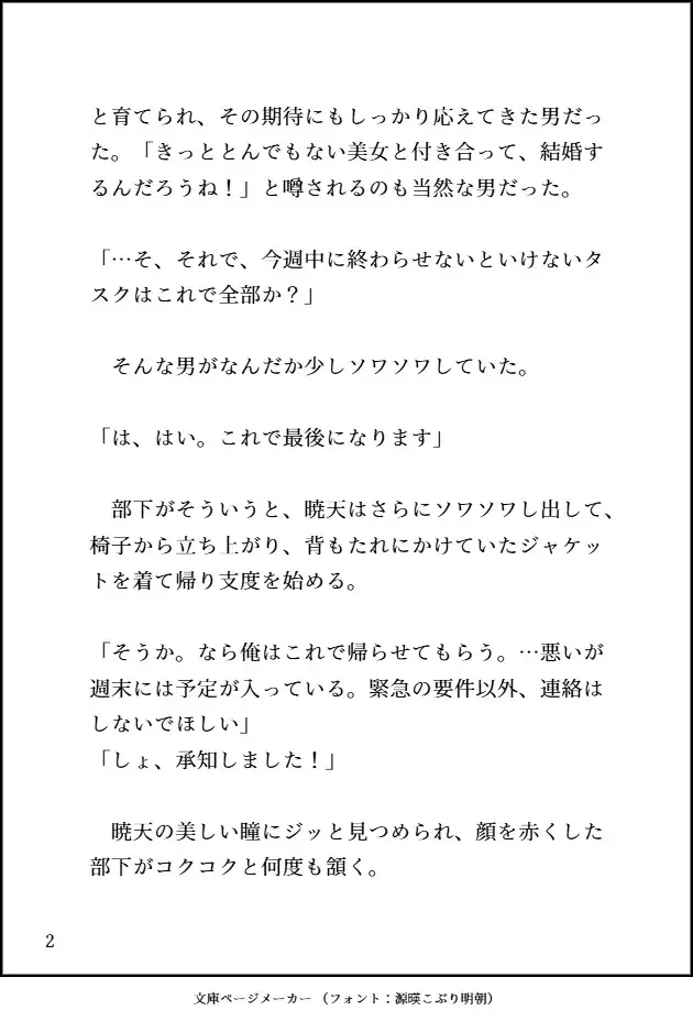 ■あらすじ勝ち組街道まっしぐらで生きてきた圧倒的雄の皇暁天。身長189センチのガチムチ体形で、男らしい顔立ち、会社経営者と来れば、男女どちらからも言い寄られる毎日だった。