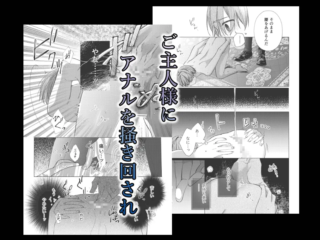 身を清め通された扉の向こうには裸体でうずくまる少年たち……。指示に従い同じようにうずくまった少年はご主人様から蕾を検められ、