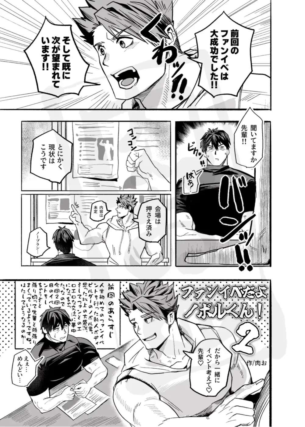 雑誌のテーマに合わせたミニ漫画を掲載。ボディビルをテーマにしてただ男を愛でるだけの漫画でございます。続き物っぽいですが、あらすじを読めば問題なし!という感じの内容です。