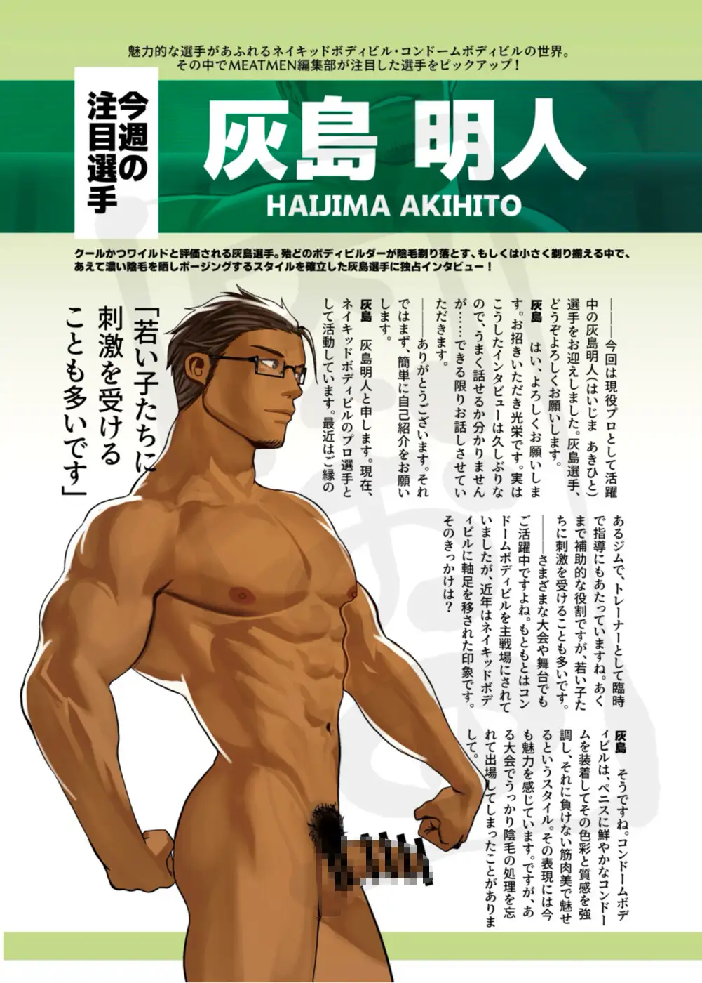 MEATMENでは雑誌の記事風の文章とイラストを楽しむことができます。エロだが妙に真面目。筋肉や男根を楽しみ愛でる世界の雑誌、企画何だなぁと思いつつ読んでいただければ幸いです。