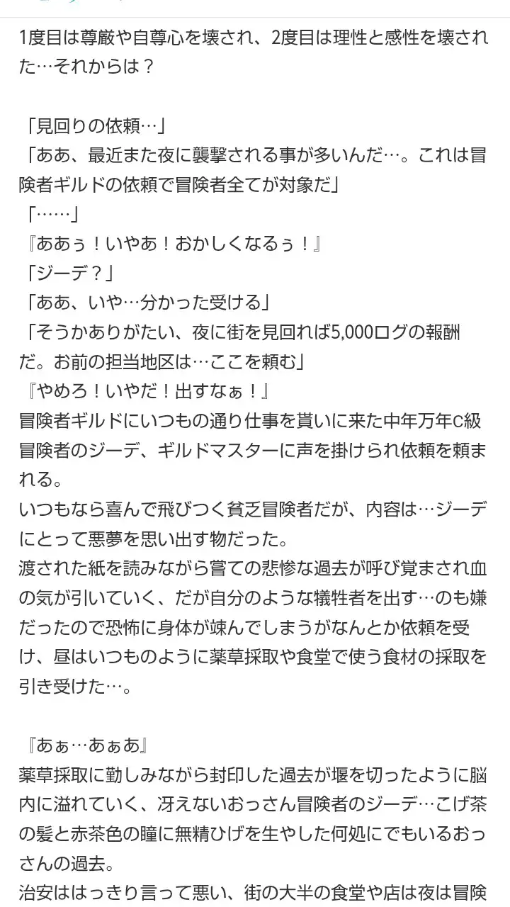 過去に見知らぬ男に強○されたおっさん冒険者の過去に囚われながら好きな人と過ごす…