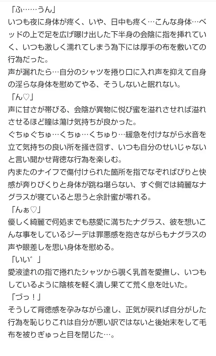 ナグラスに感謝と恋心を抱きながら毎夜過去を思い出しながらも、ナグラスを想い独り身体を慰める日々を送っていた…。