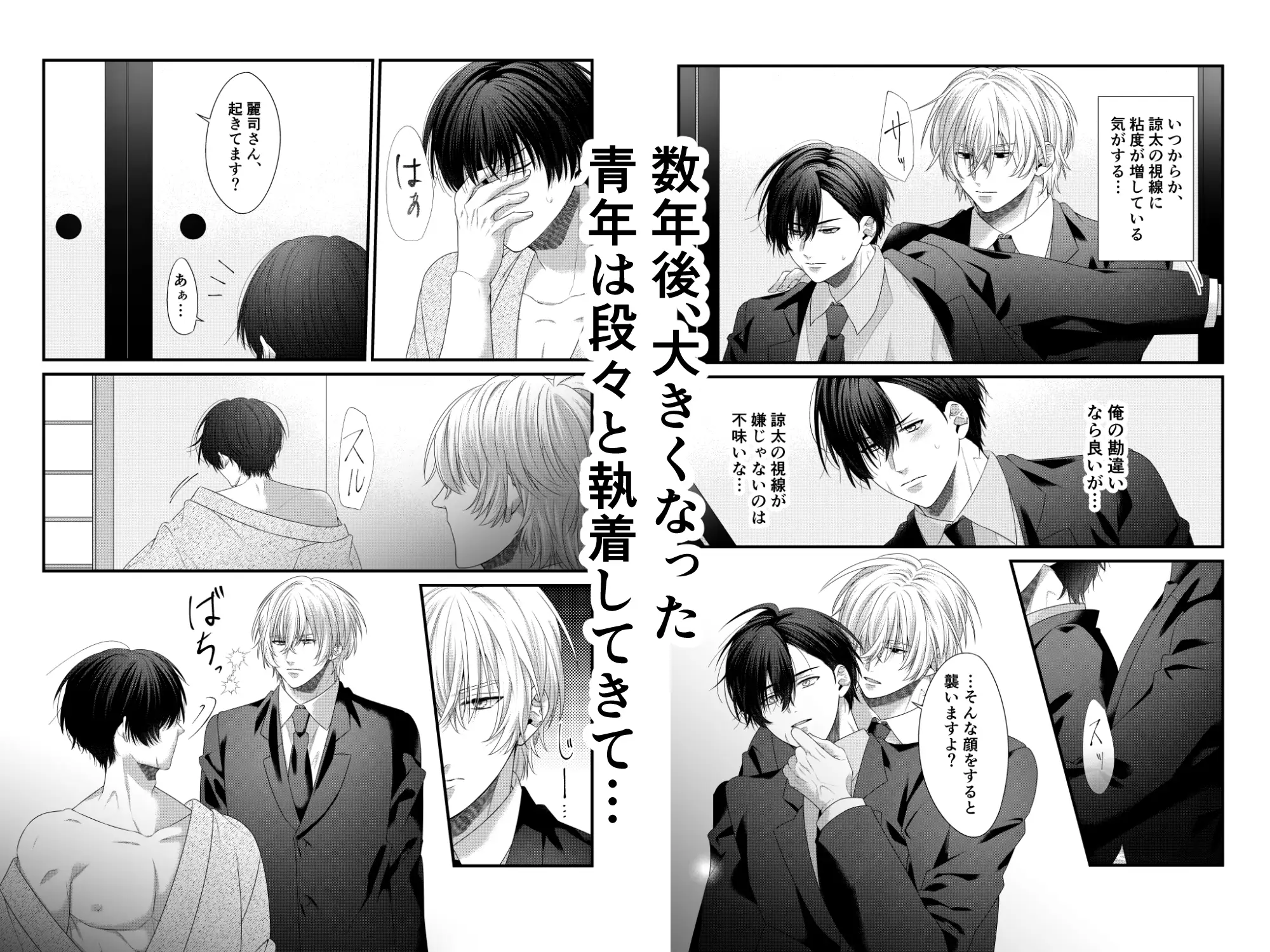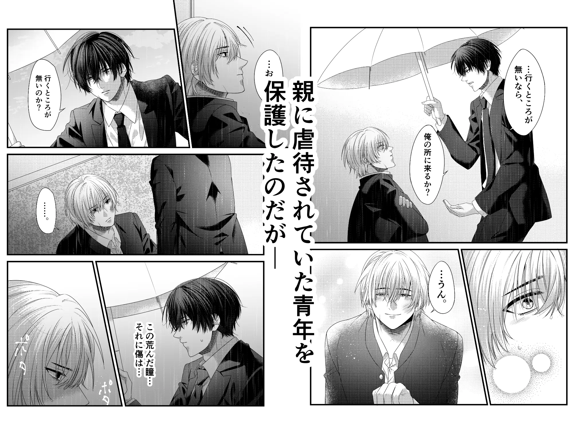 主人公の麗司は雨の中で蹲っていた青年、諒太を過去の自分と重ねてしまい保護することに。その数年後、諒太の視線の違和感に気付きつつも気付かないふりをするが、
