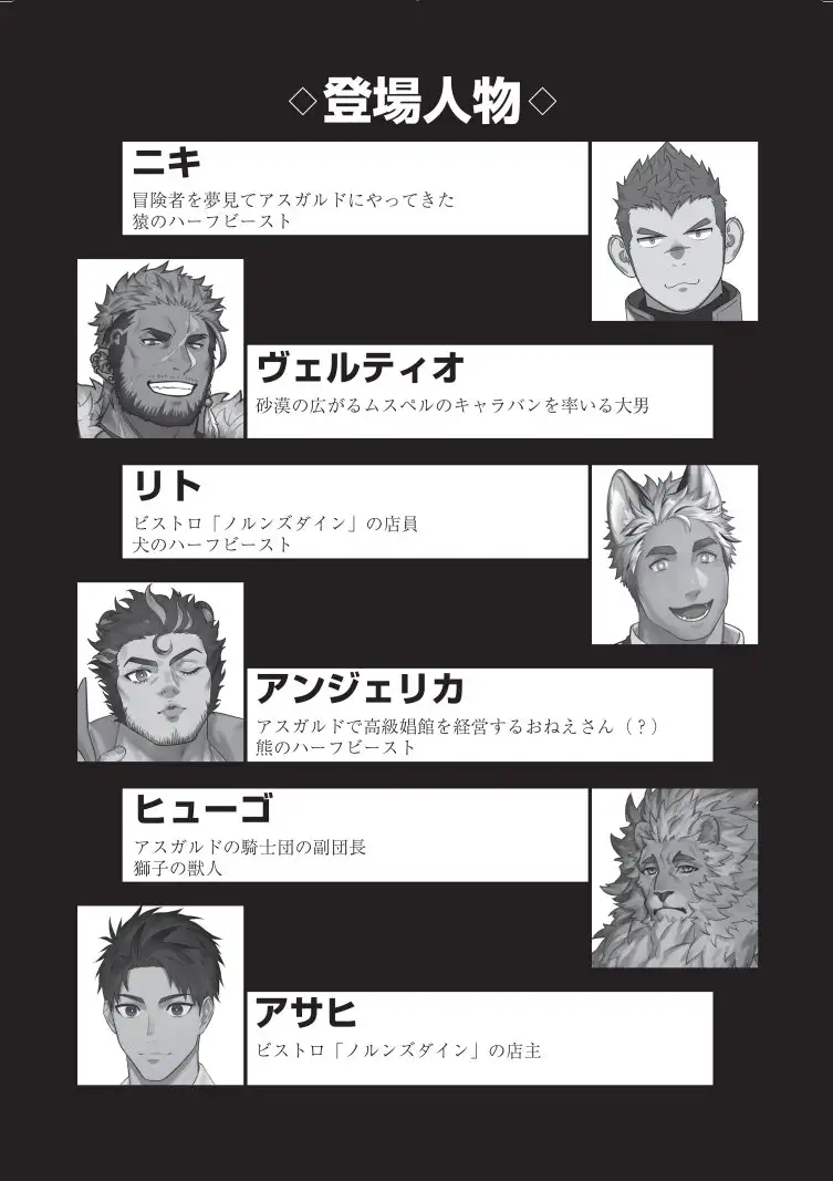 仕事中に触手に襲われたり、がたいの良いおっさんに助けられたり、奇妙な牛獣人兄弟と出会ってとんでもない目にあったり、娼館の仕事中に見た事のあるおっさんの乱交を目撃したり、リトの笑顔にニキが胸キュンしたりするお話です。※ニキがモブや触手に犯される描写があります