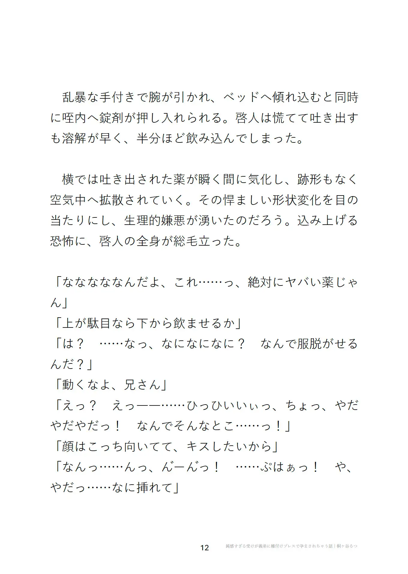 無理やり孕ませ薬を飲まされて、抵抗する間もなく義弟との子作りセックスが始まってしまうーー。