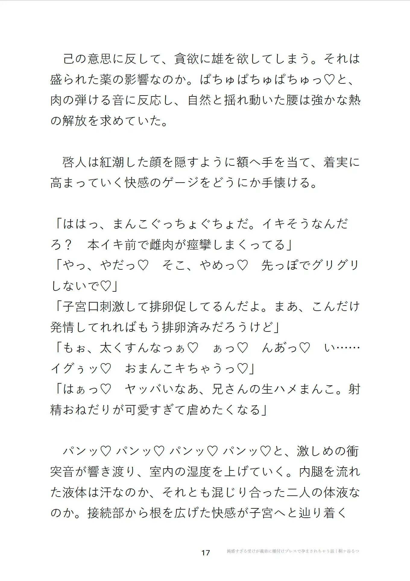 孕ませ薬まで用意され、同性との結婚など断固拒否の啓人は婚前逃亡を決め込む。