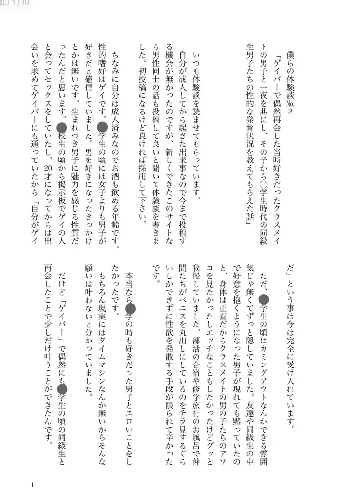 No.2「ゲイバーで偶然再会した当時好きだったクラスメイトの男子と一夜を共にし、その子から◯学生時代の同級生男子たちの性的な発育状況を教えてもらえた話」(合計7,100字程)