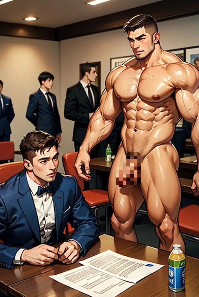 俺は今男にチ●コをしゃぶられている。それも皆ちゃんとしたスーツを着ているのに、俺だけが全裸にさせられて、それも恥ずかしいことにチ●コを勃起させられている状況になるなんて想像もしなかったので、心臓がバクバクして飛び出しそうだった。そしてしばらくする富田が言った。