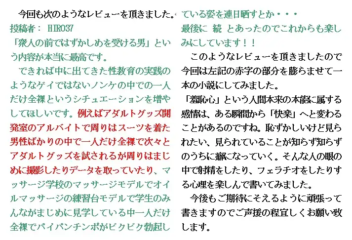 しかし、四名の男の視線が食い入るように今俺のチ●コを見ていると思うと、なかなか完全勃起までは進まない状態だった。