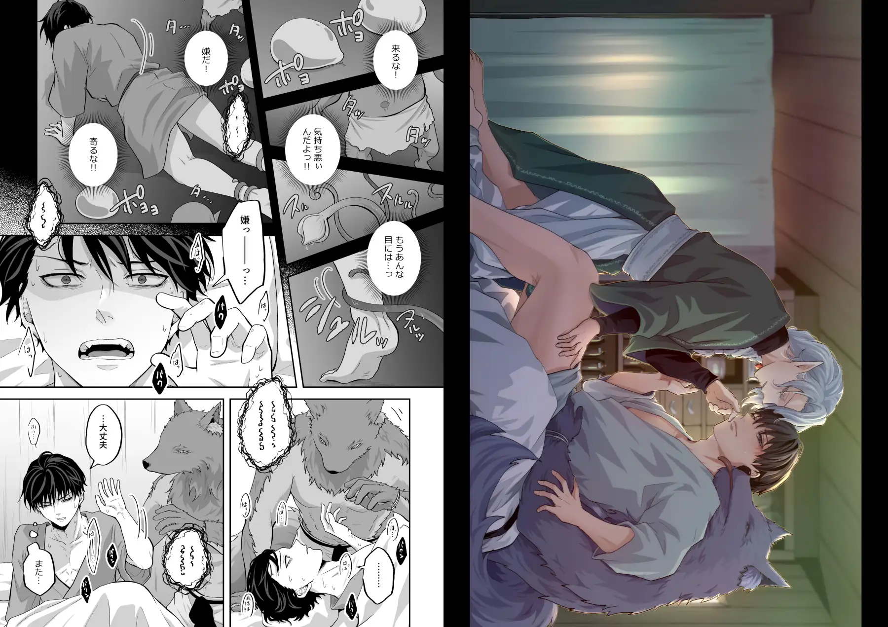 地面に沈んで感覚遮断プレイに持ち込まれた第五弾に続き、ようやく、再度エルフの家に戻る事が出来た主人公にエルフとコボルトが…!?な異種姦第六弾。