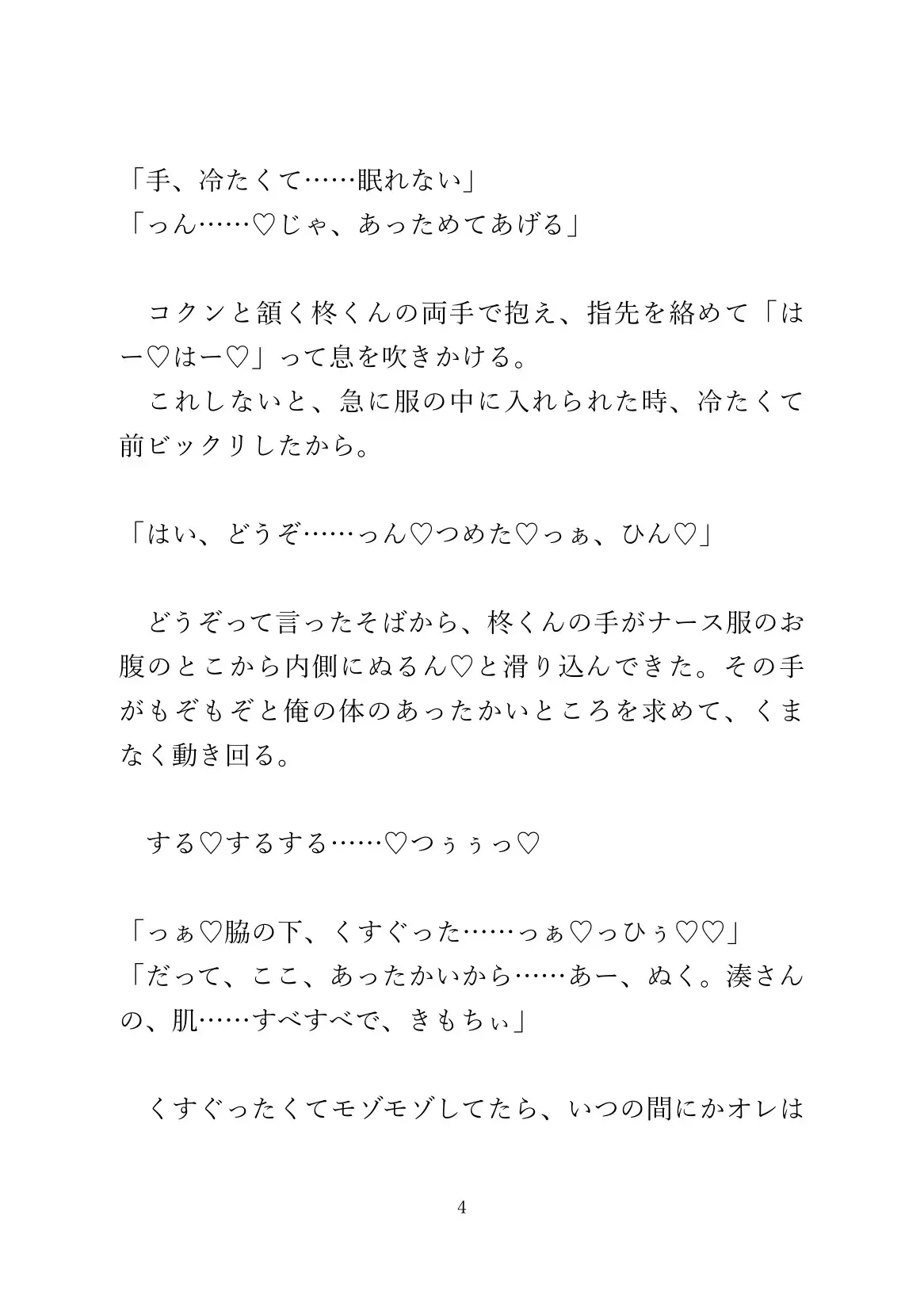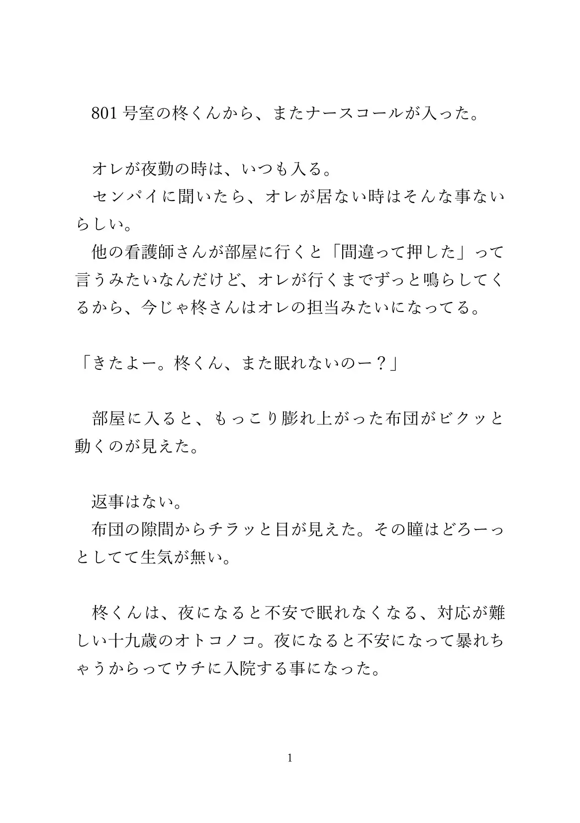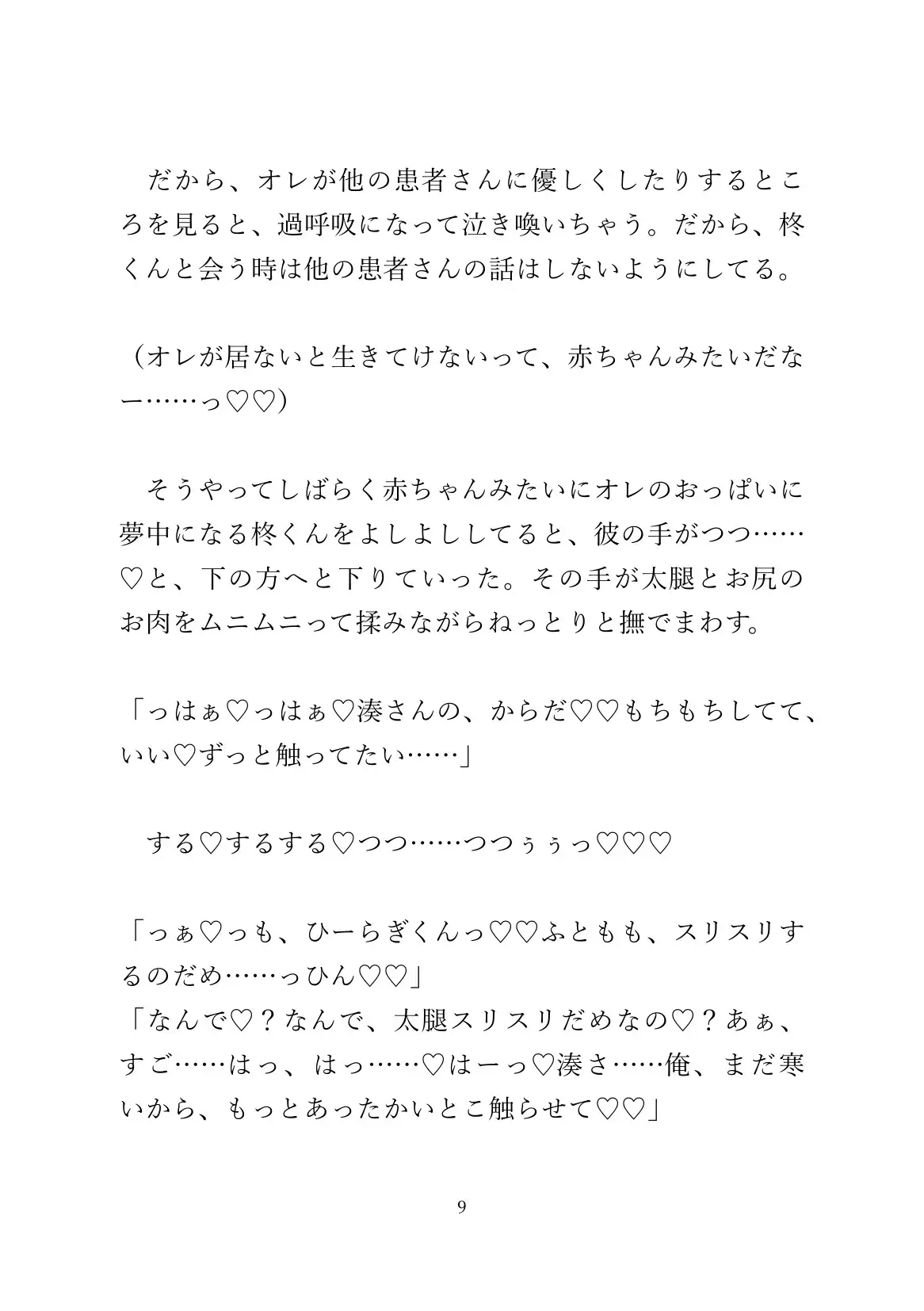 患者はカント看護師に依存する独占欲強めのヤンデレ系。文字数はハート、濁点など込みで約14000字程度(43P)