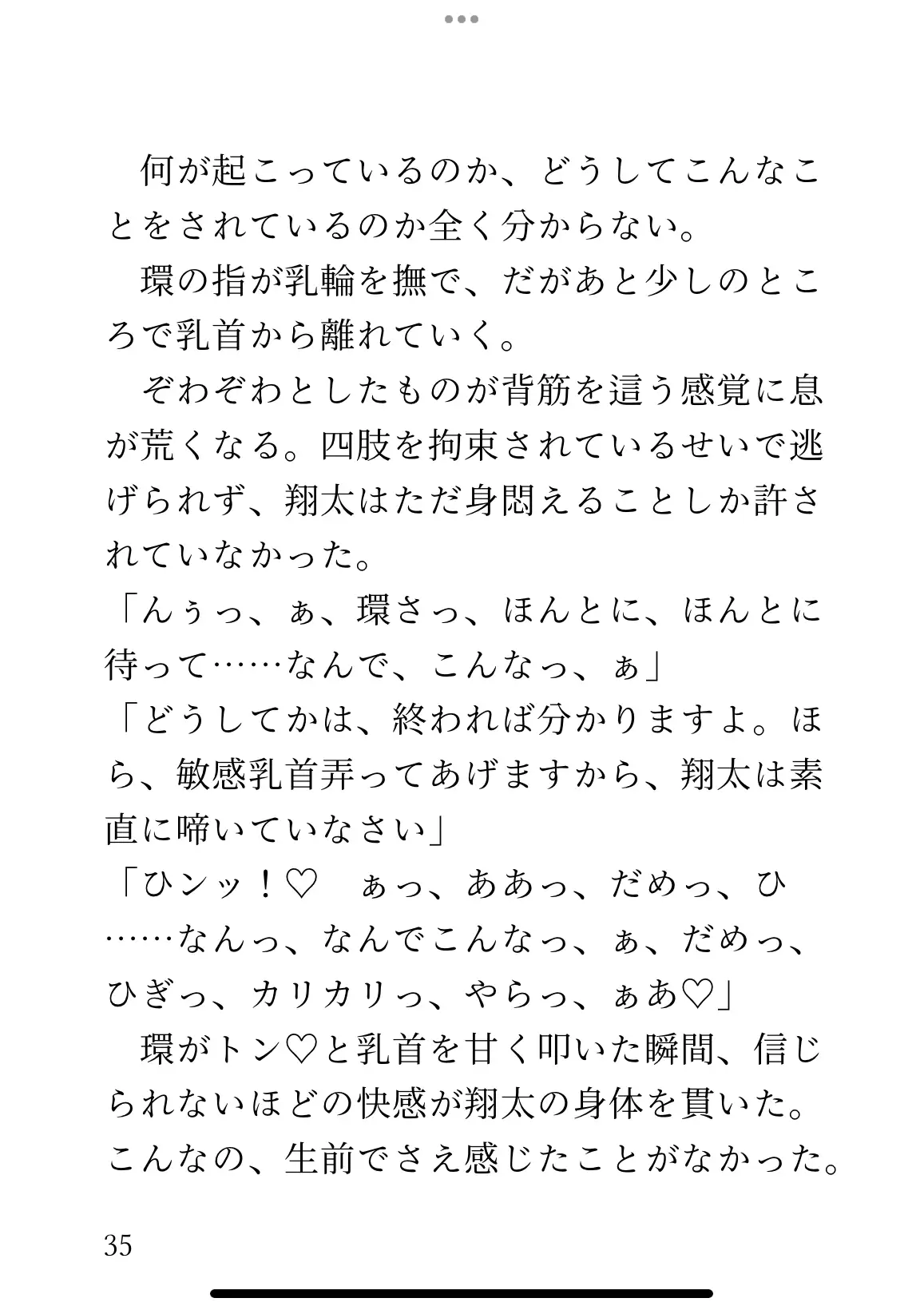 拘束、乳首責め、寸止め、亀頭責め、手マン、前立腺開発、正常位、微洗脳、連続絶頂etc.縦書き:75ページ