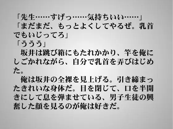 文字量:約4000文字●体育教師の秘密のサービス2~巨根なだけじゃダメですか?