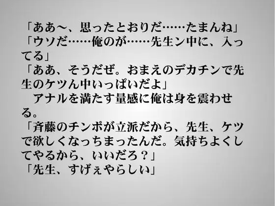#フェラ #アナル(騎乗位・教師がウケ) #射精2回(生徒1回、生徒・教師同時1回)