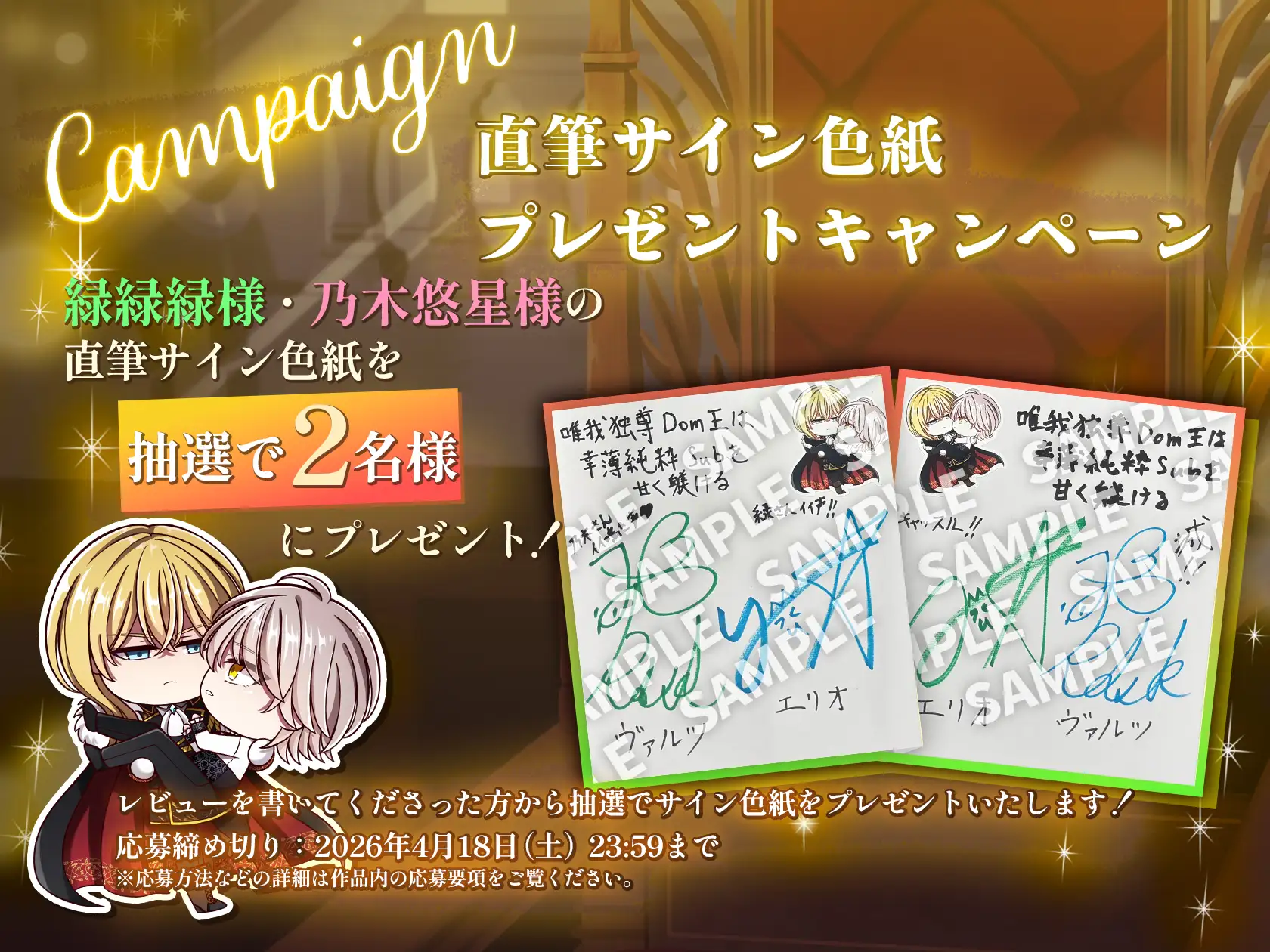 レビューを書いてくださった方から抽選でサイン色紙をプレゼントいたします!
