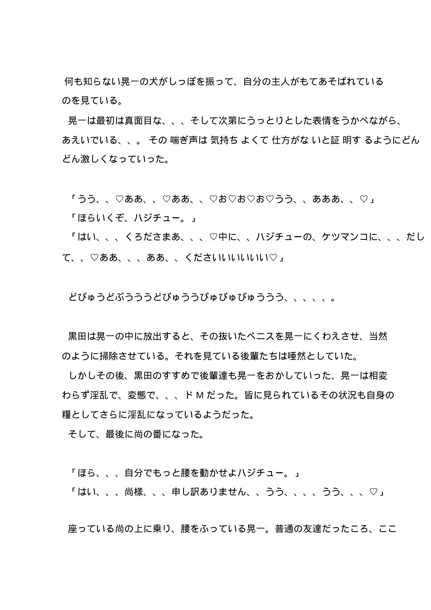 バイブ責め、犬扱い、青姦、露出、自分の飼っている犬の前で、野球部後輩の前で、輪○、羞恥芸、粉まみれ、モブ○等々。