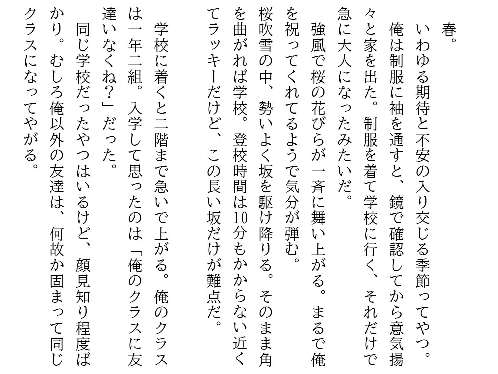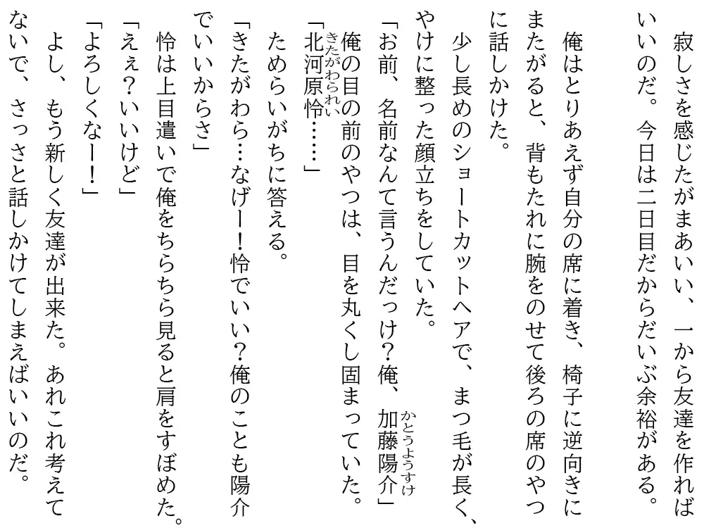 新しい学校生活が始まった春。加藤陽介は、同じクラスになった北河原怜と