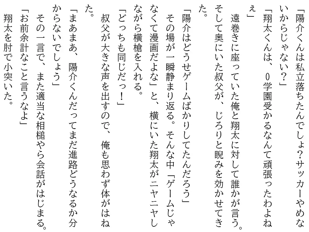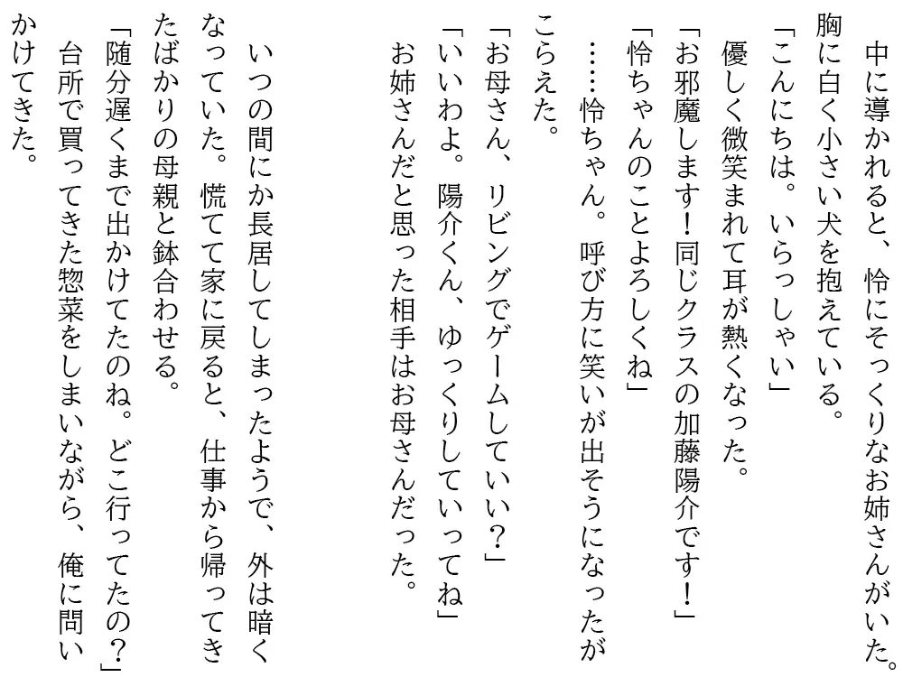 出会う。活発で一直線な陽介と、静かに世界を見つめる怜。近所に住んで