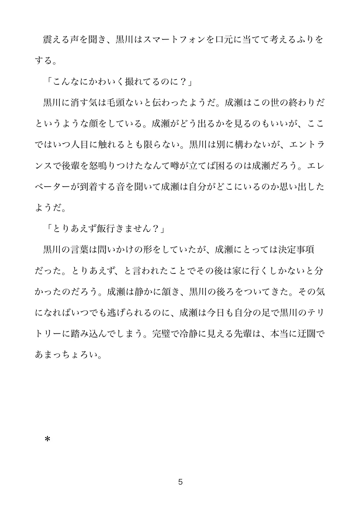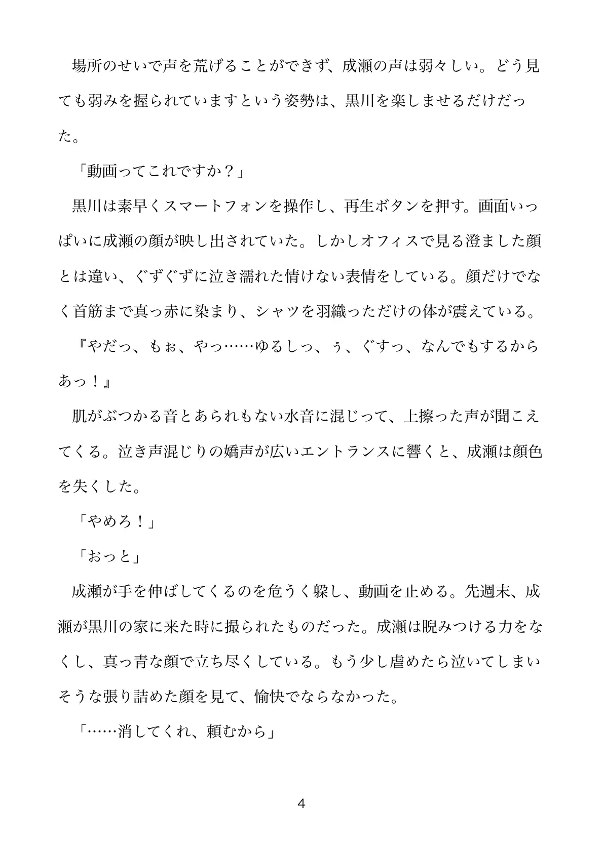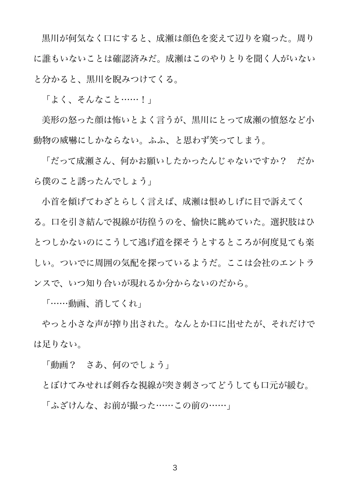 言葉責め、性感帯開発、耳舐め、首責め、背中、腰、尻責め、ゾクゾクとゾワゾワ、撮った動画を見せられる、自分の口で言わせる、おねだり強○、精神的に絡めとる、痴○、四つん這い、ネクタイ首輪本文23000字弱+10000字