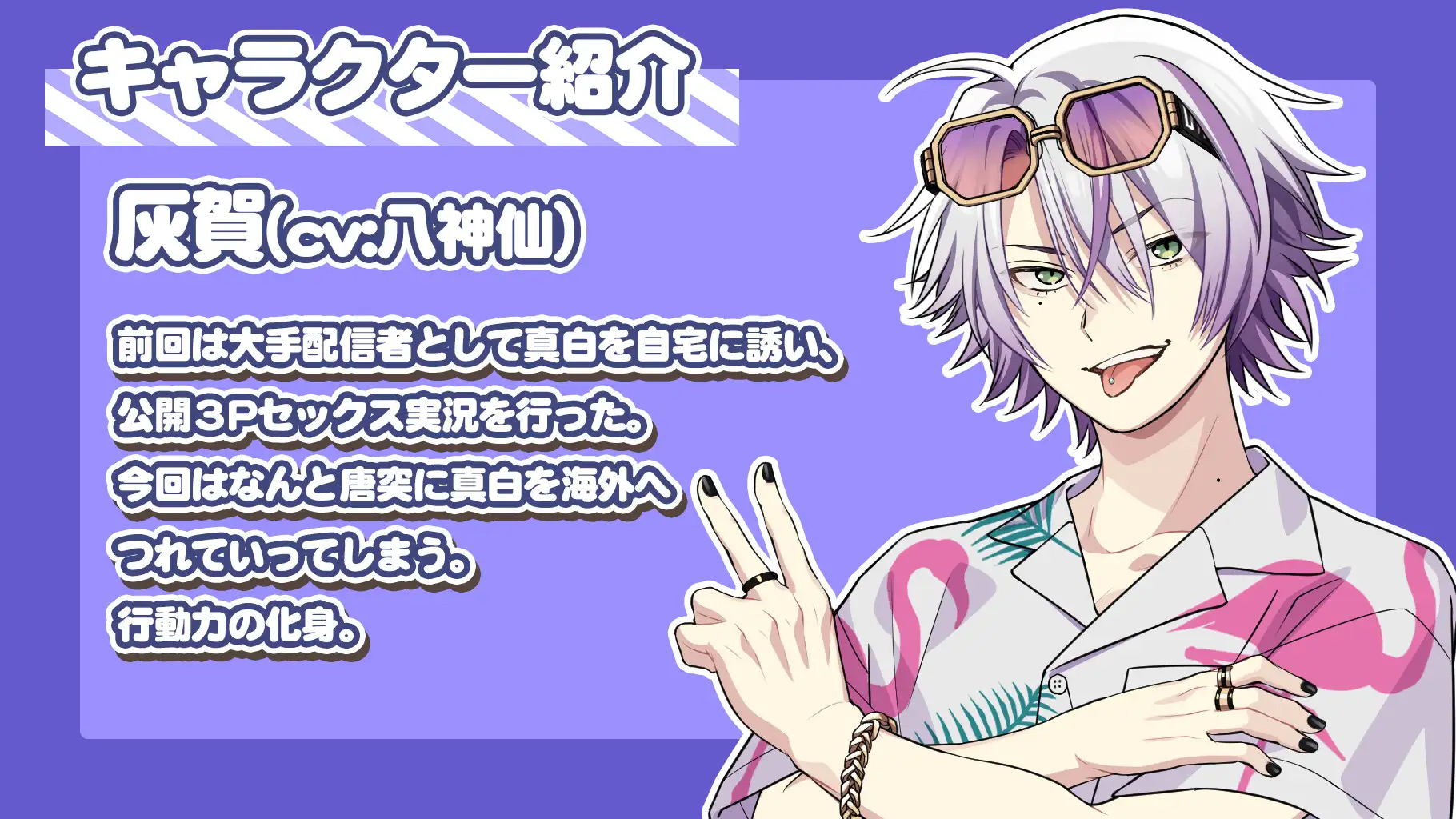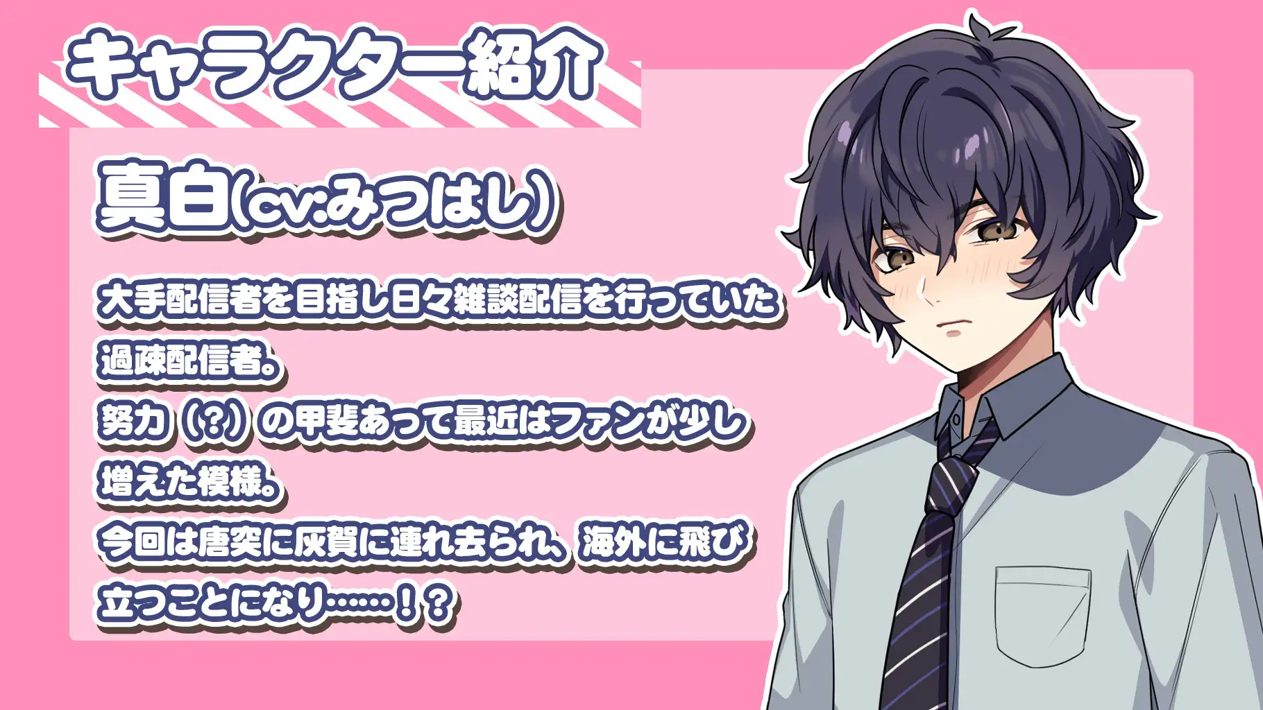 前作「配信者真白くん3~有名配信者と体育教師で汁だく3P実況ライブ~」で、超有名配信者「灰賀」にはめられ、50万人ものリスナーの前で3Pをしてしまった真白くんと体育教師「黒井」。だまし討ちのような形で始まったHだったが、気持ちいいこと(と投げ銭)によわよわな真白くんは、あっという間にノリノリに! 真白くんを独占したかった黒井先生も最後には灰賀と和解し、今後は3人でエロ配信を続けていくことになったのだったが……。そしてある日のこと、真白くんの通っている学校に灰賀が現れると、有無を言わさず真白くんを連れ去ってしまう! 灰賀の目的地は、先生の手が届かないであろう海外の遠い遠い南の島だった……!! 灰賀の狙いとは!? 先生の逆襲は? そして、我らが真白くんの運命やいかに!?