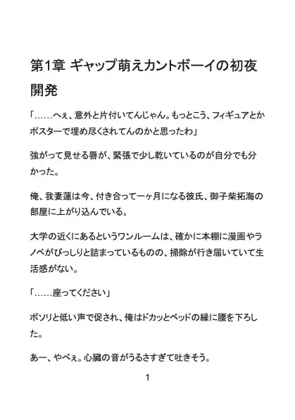 自信満々だった初夜、クリトリスからは潮を噴き上げさせられる蓮。 さらにエスカレートする性教育は、未開のアナル開発へ。 「前も後ろも、全部俺の色に染めたい」 指と肉棒で両穴を同時に挟み撃ちされ、薄い壁越しに伝わる刺激に脳髄まで痺れさせられる。