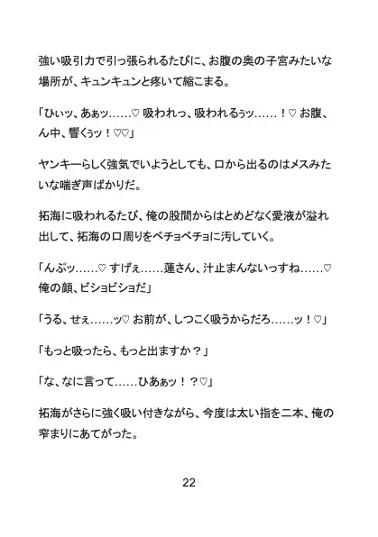「あッ、あッ、あッ!♡ 壊れるッ、お腹突き破っちゃうぅッ!♡♡」見た目は強気な金髪ヤンキー、中身はウブなカントボーイの我妻蓮。 付き合い始めた陰キャオタク彼氏・拓海を「俺がリードしてやる」と意気込んでいたが、無口な彼の本性は、身長188cmの巨体と規格外の【凶悪巨根】を持つ溺愛彼氏だった!