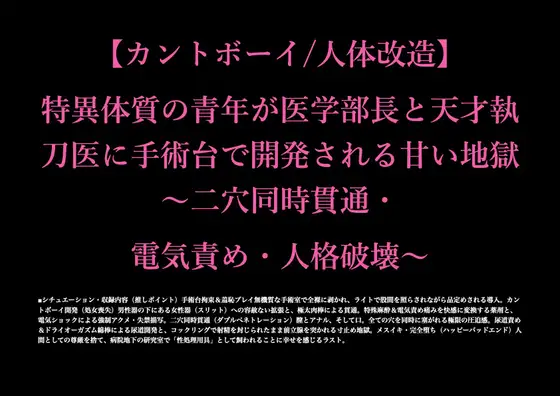 冷徹な天才執刀医による電気ショックでの神経書き換え。 剛腕医学部長による規格外のピストン。 老獪な教授による器具を使った尿道責め。