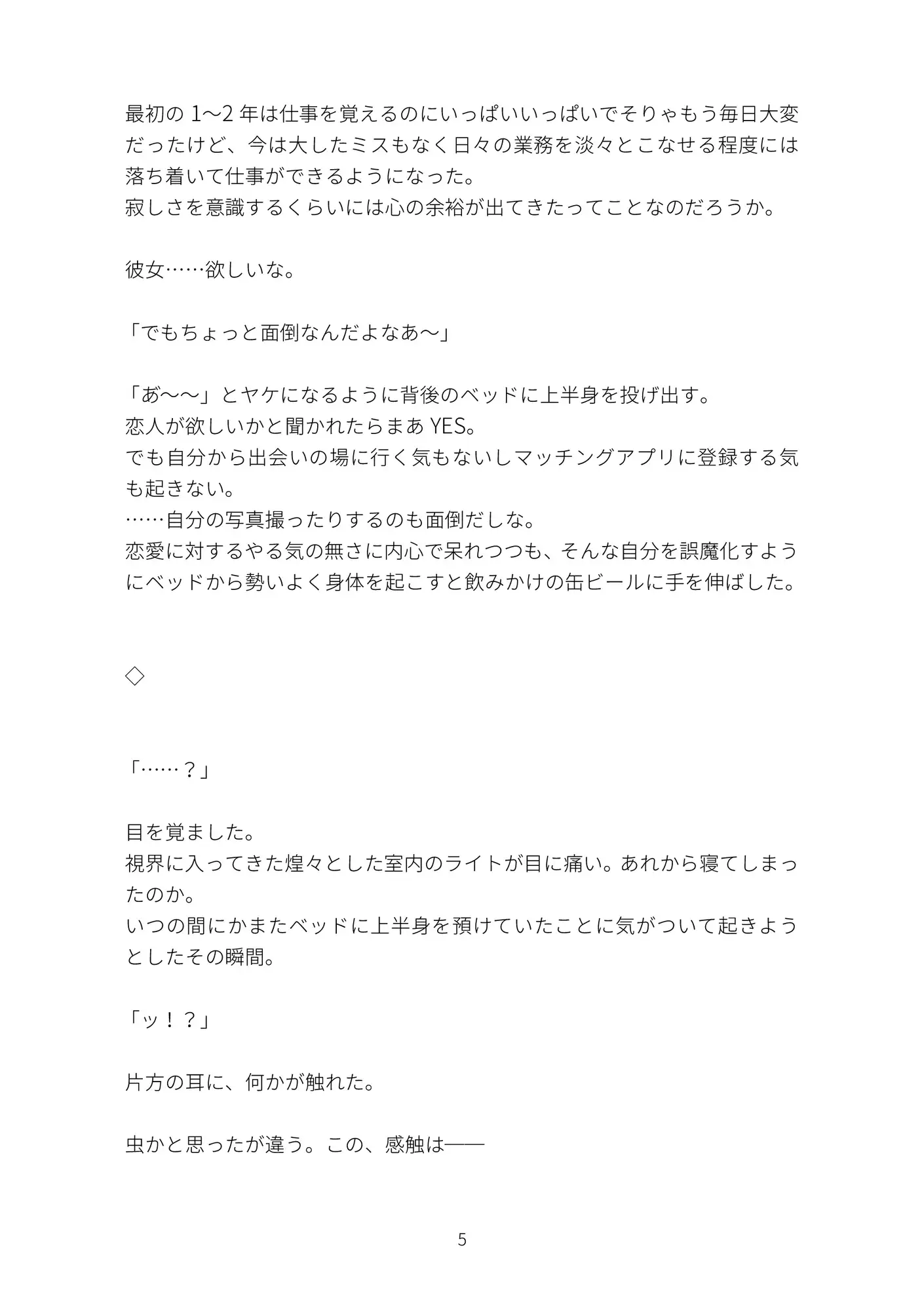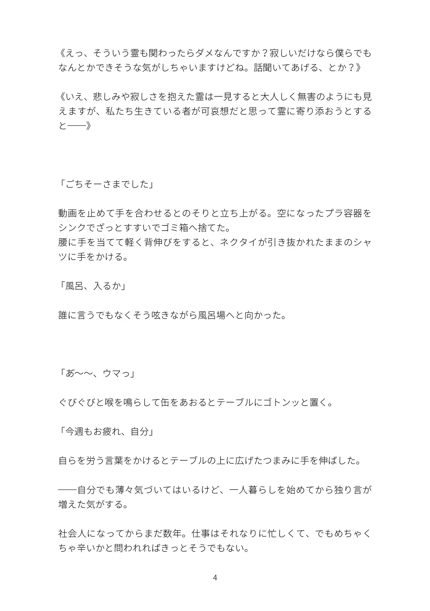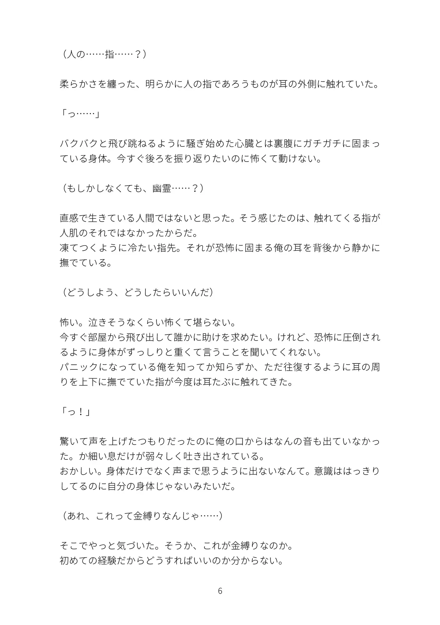 どこにでもいるサラリーマンの主人公はある夜、霊現象に遭遇してしまう金縛りで動けない身体、背後から耳に触れてくる冷たい指先
