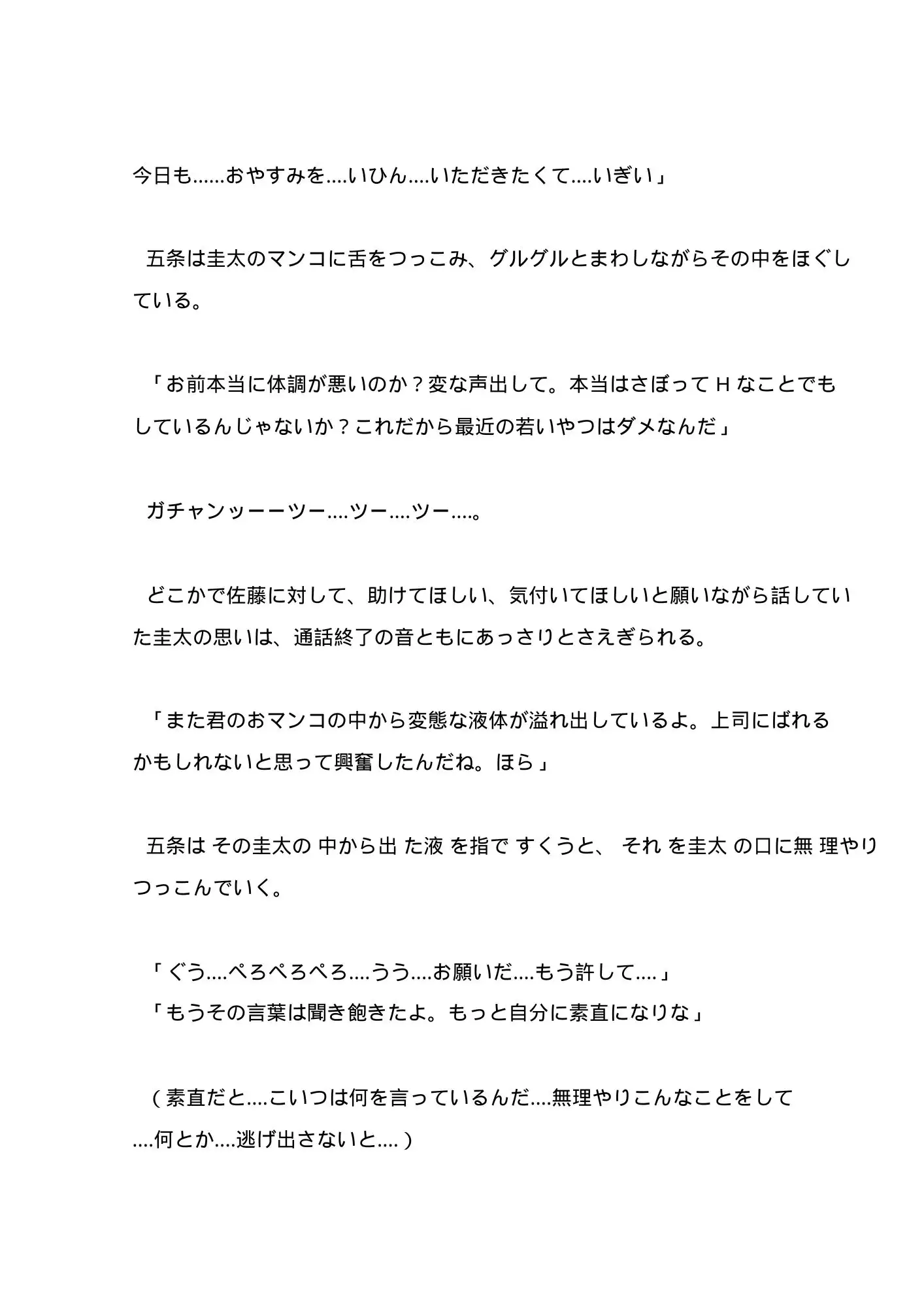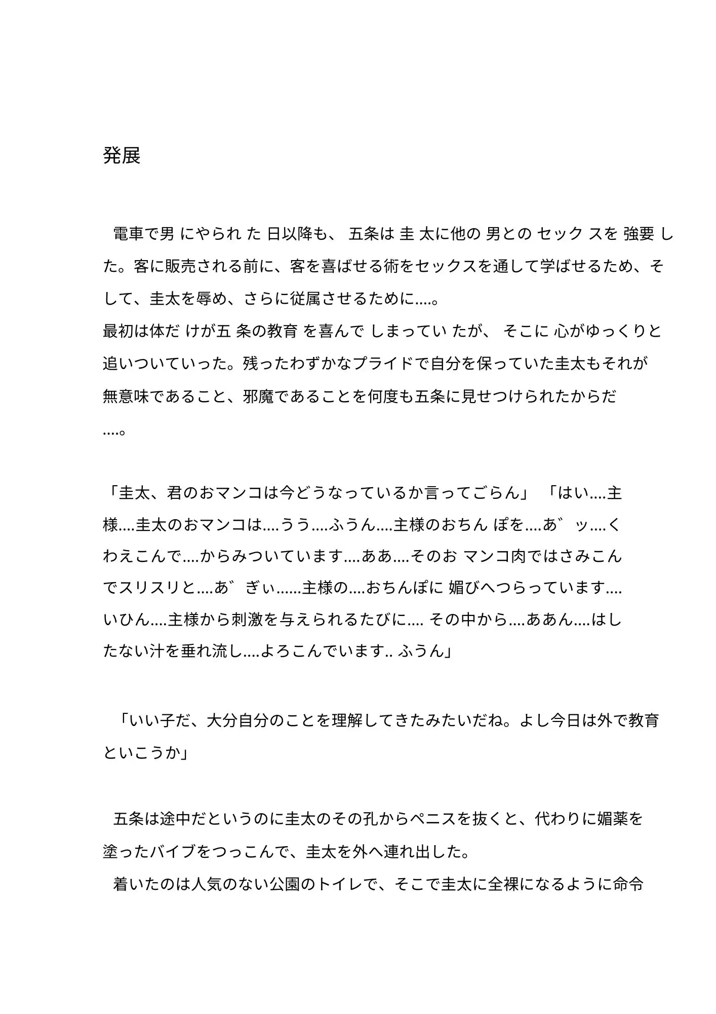 変態露出狂のカントボーイ(女性器をもつ男性)を捕まえた警察官八雲圭太が、その変態露出狂の主人である五条剛にカントボーイ化ウィルスを打たれて、代わりの奴○、販売用の商品にされていく‥‥。※♡表現多めの作品です。快楽調教メインで、SM要素少なめです。