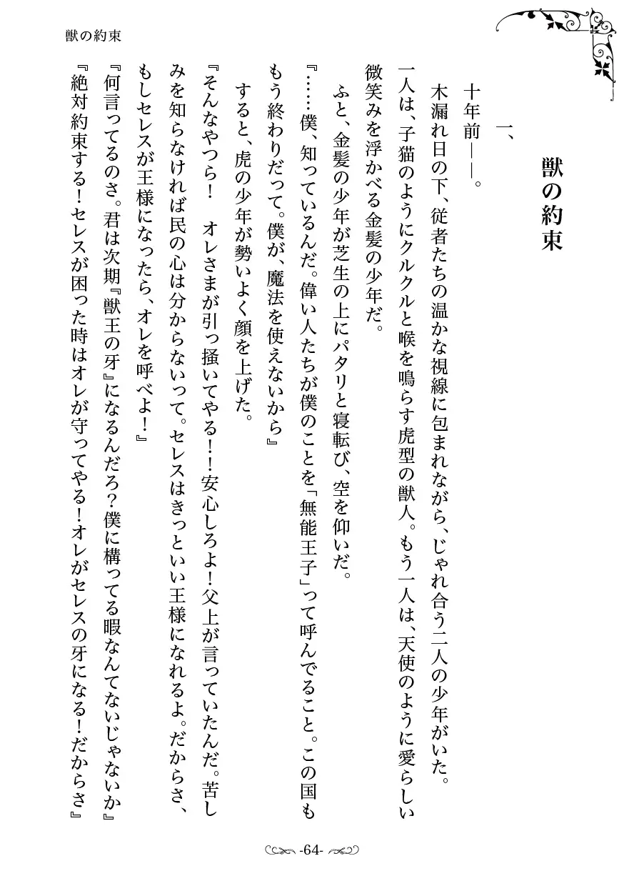 獣化できない獣人の少年と、彼を「実験台」として手元に置く天才発明家王子。10年前の約束が、歪な愛へと変貌する。おまけ:白い部屋