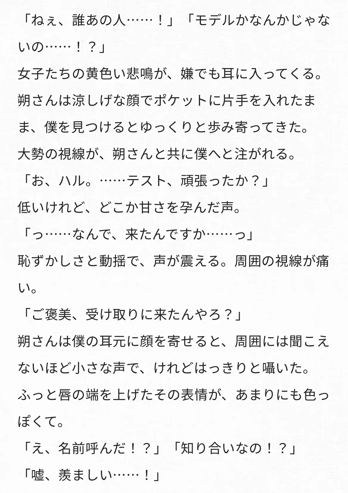 美術部に所属する純粋な高校生・七瀬ハルにとって、家庭教師の一条朔は、眩しいほどに完璧で、遠い憧れの存在だった。けれど、土砂降りの雨の日に告げられた朔からの熱い告白が、二人の関係を劇的に変えてしまう。
