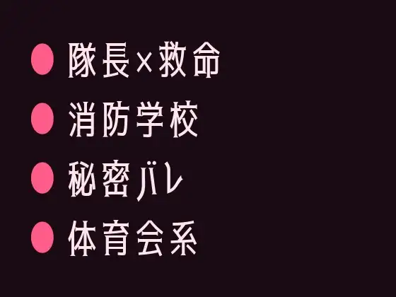 隊長×新人救命士 / 消防学校 / カントボーイ / 秘密バレ / 体育会系 / 年上攻め / 筋肉 / 制服 / 処女喪失 / 中出し