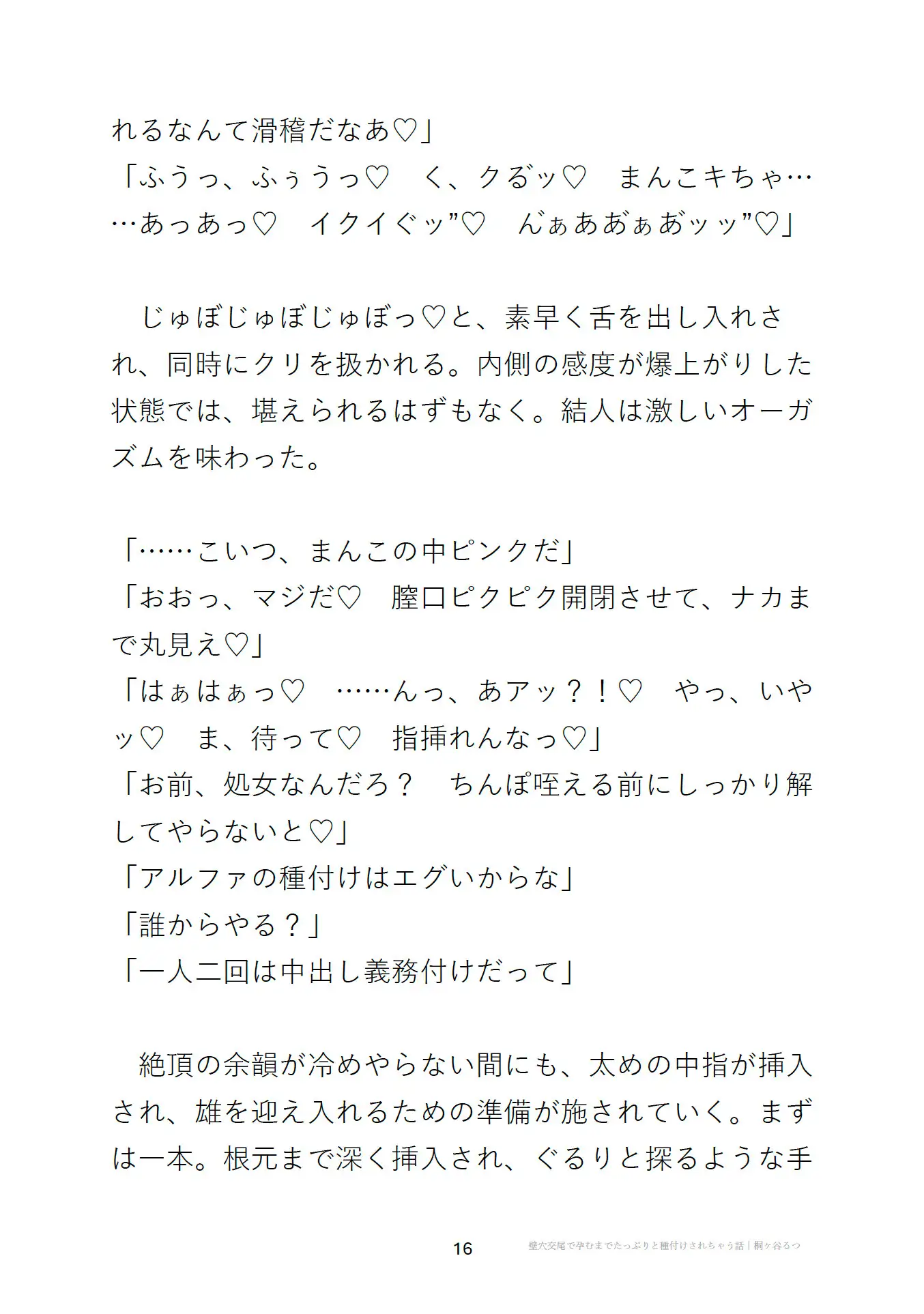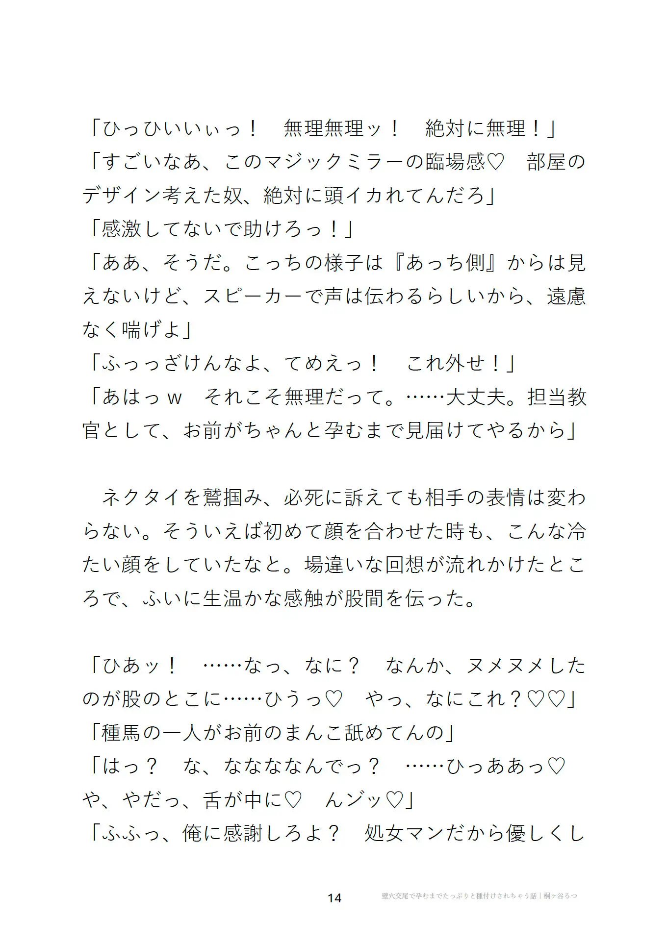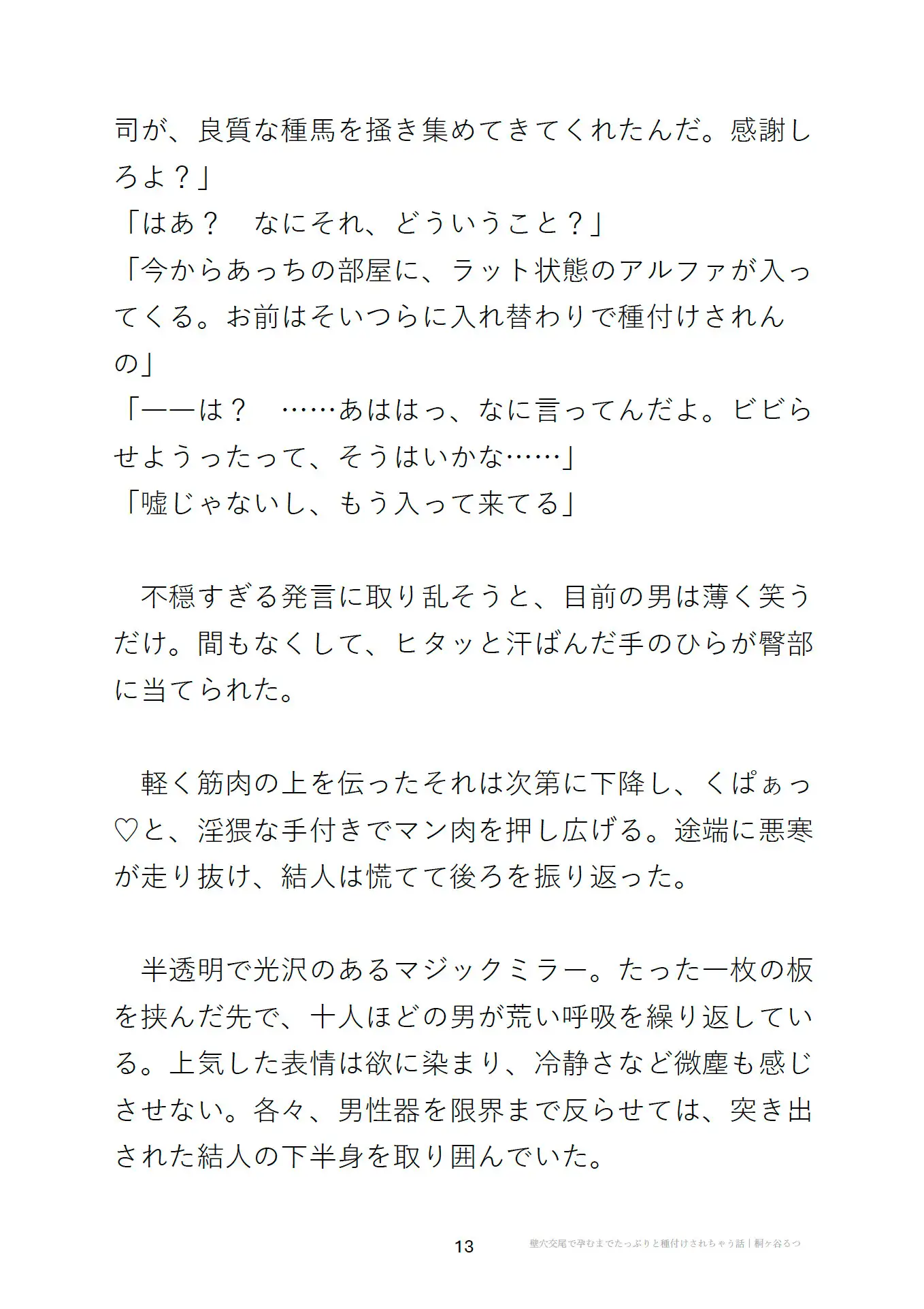 目の前には憎たらしい担当教官、下半身は発情したアルファたちのいる部屋へと差し出され、種付け交尾が始まってしまう…。