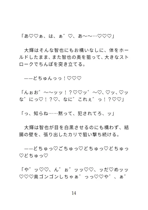 何度も中出し&結腸にがっぽりハメられて大量中出しされる話です。恋人同士・大輝×智也