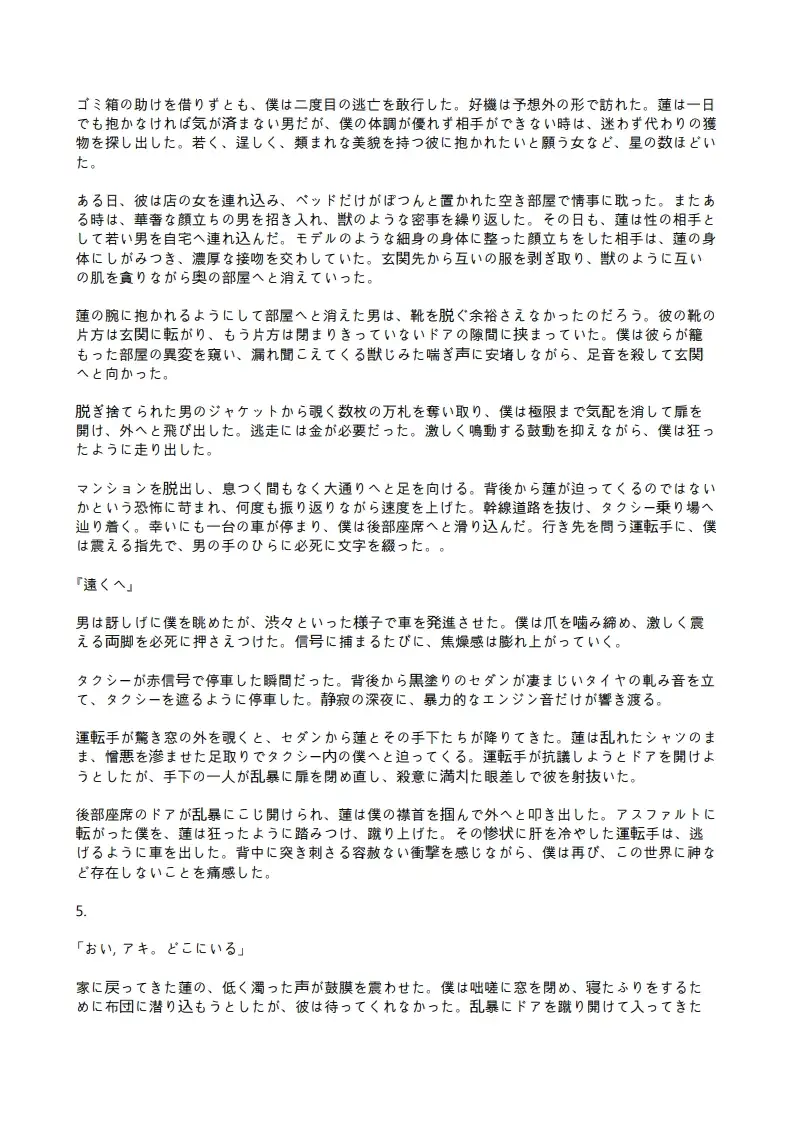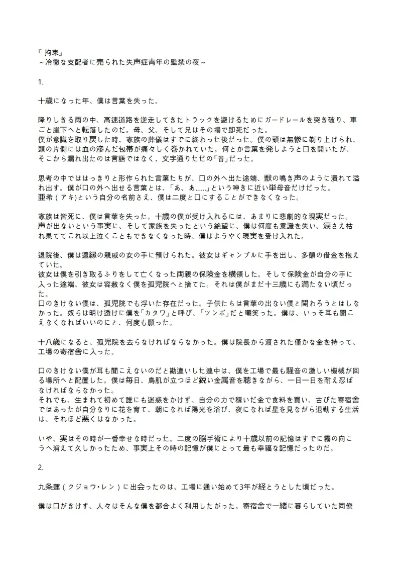 【傾向/他】 ・創作BL/シリアス/ハード/執着攻/薄幸受/失声症/監禁 ・中出し/ゴムなし/言葉責め/わからせ/ハート喘ぎ/前立腺責めetc…… ・PDF形式 ・約15,000字 ・表紙にのみAIを利用しています