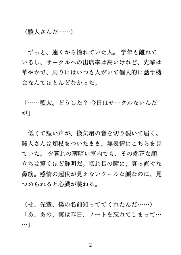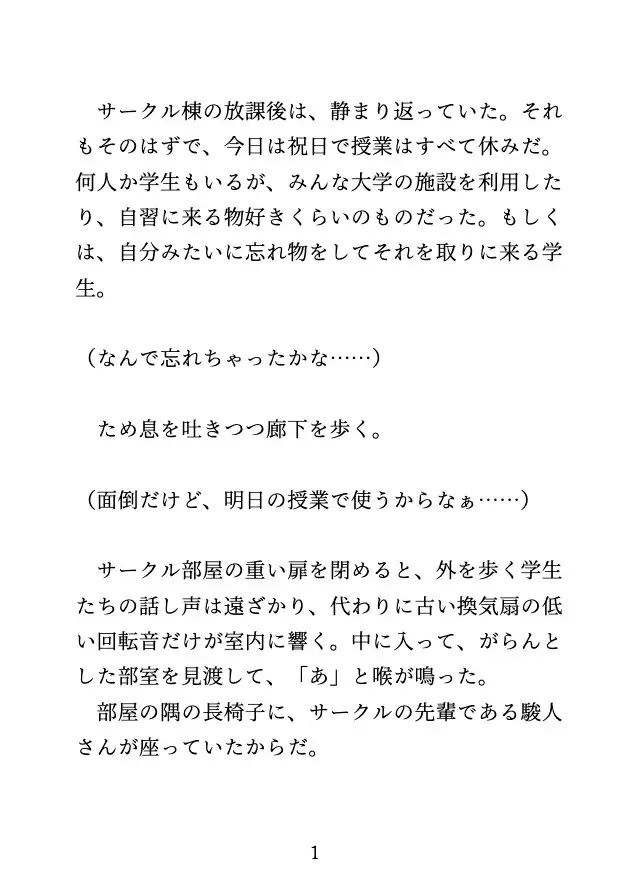 忘れ物を取りに立ち寄った、祝日のサークル棟。そこには密かに憧れていた駿人が座っていた。