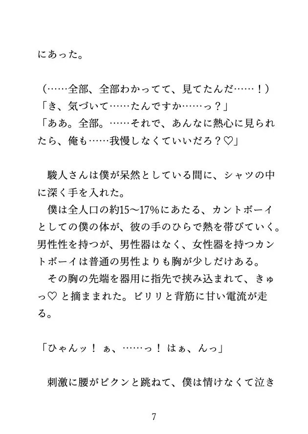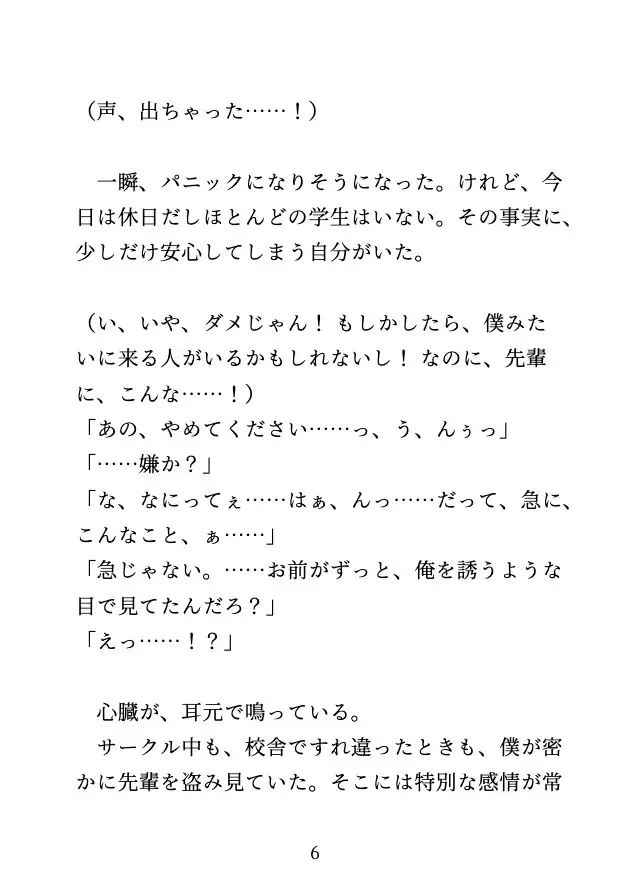 ついには秋さんの熱い想いをナカの奥まで注ぎ込まれ、身も心も先輩の色に染められていく。カントボーイが憧れの先輩にサークル部屋でいっぱい触られるお話です♡