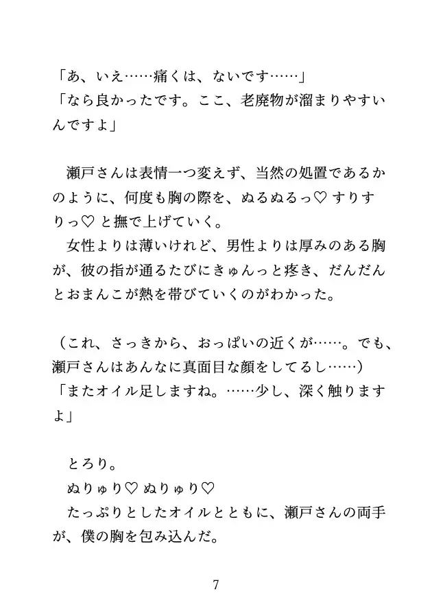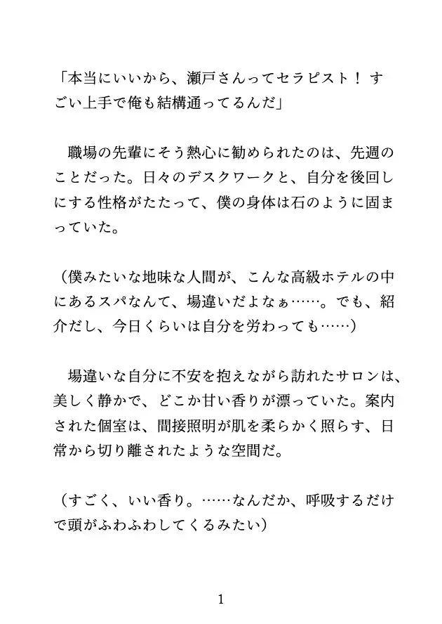 そこで担当になったのは爽やかなイケメンセラピストの瀬戸。「僕に任せてれば、全部スッキリしますから♡」